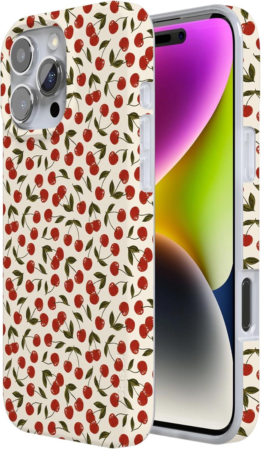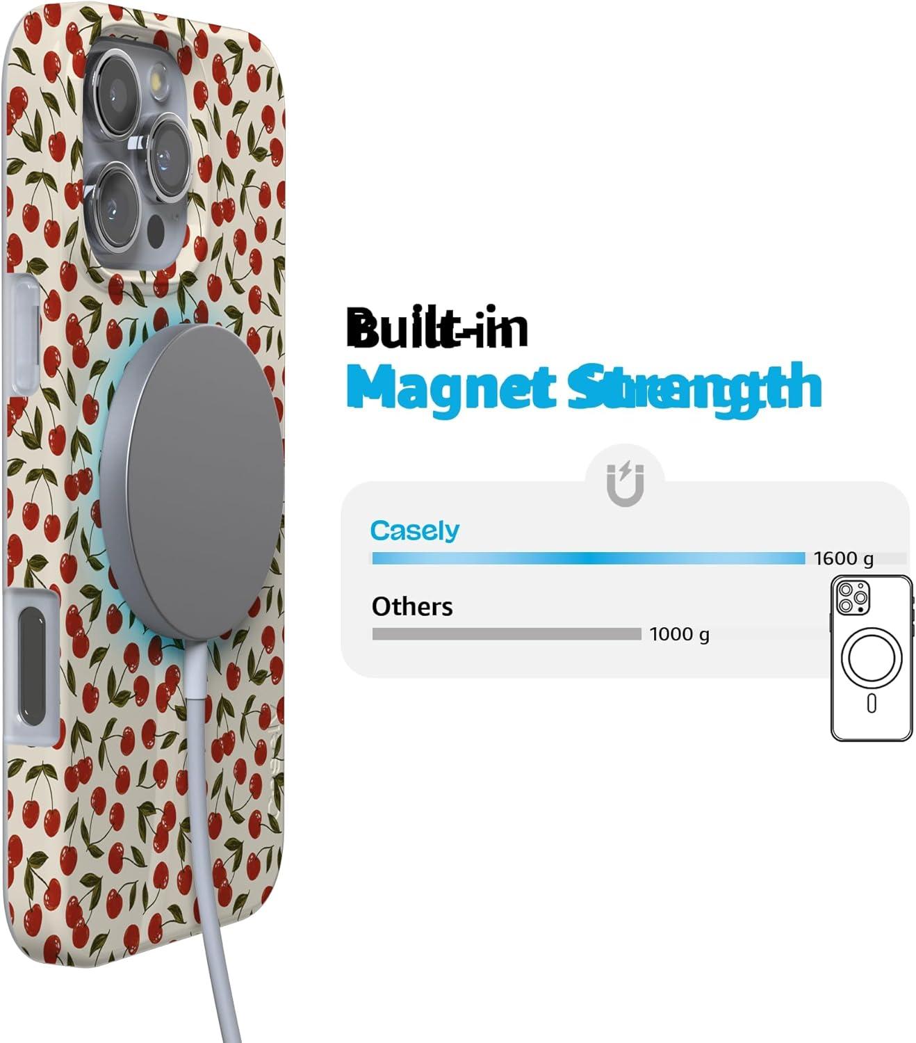 Casely iPhone 16 Pro Case | Into The Wild | White Snow Leopard | Compatible with MagSafe | Classic Ultra Slim Design(Cherry on Top | Red Cherries)