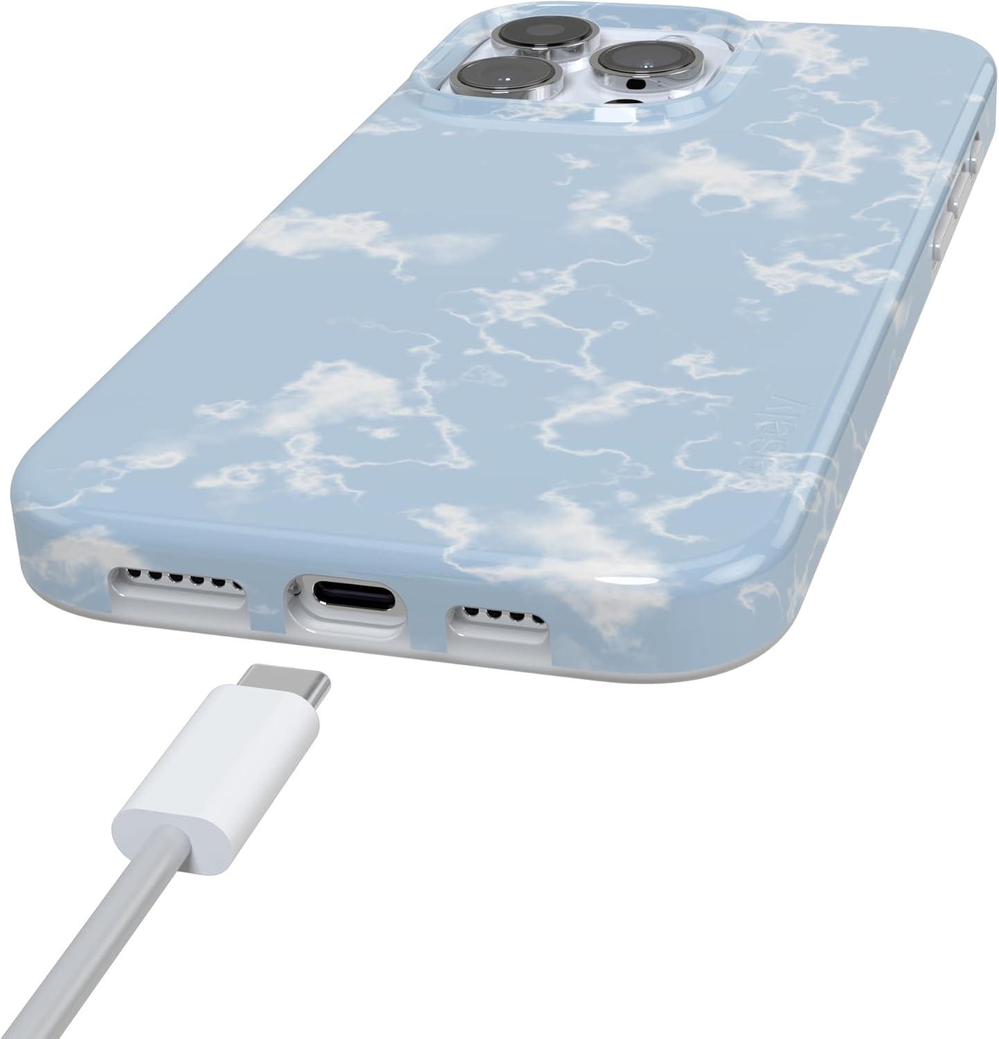 Casely iPhone 16 Pro Case | Into The Wild | White Snow Leopard | Compatible with MagSafe | Classic Ultra Slim Design(Light Blue Skies | Marble Clouds)