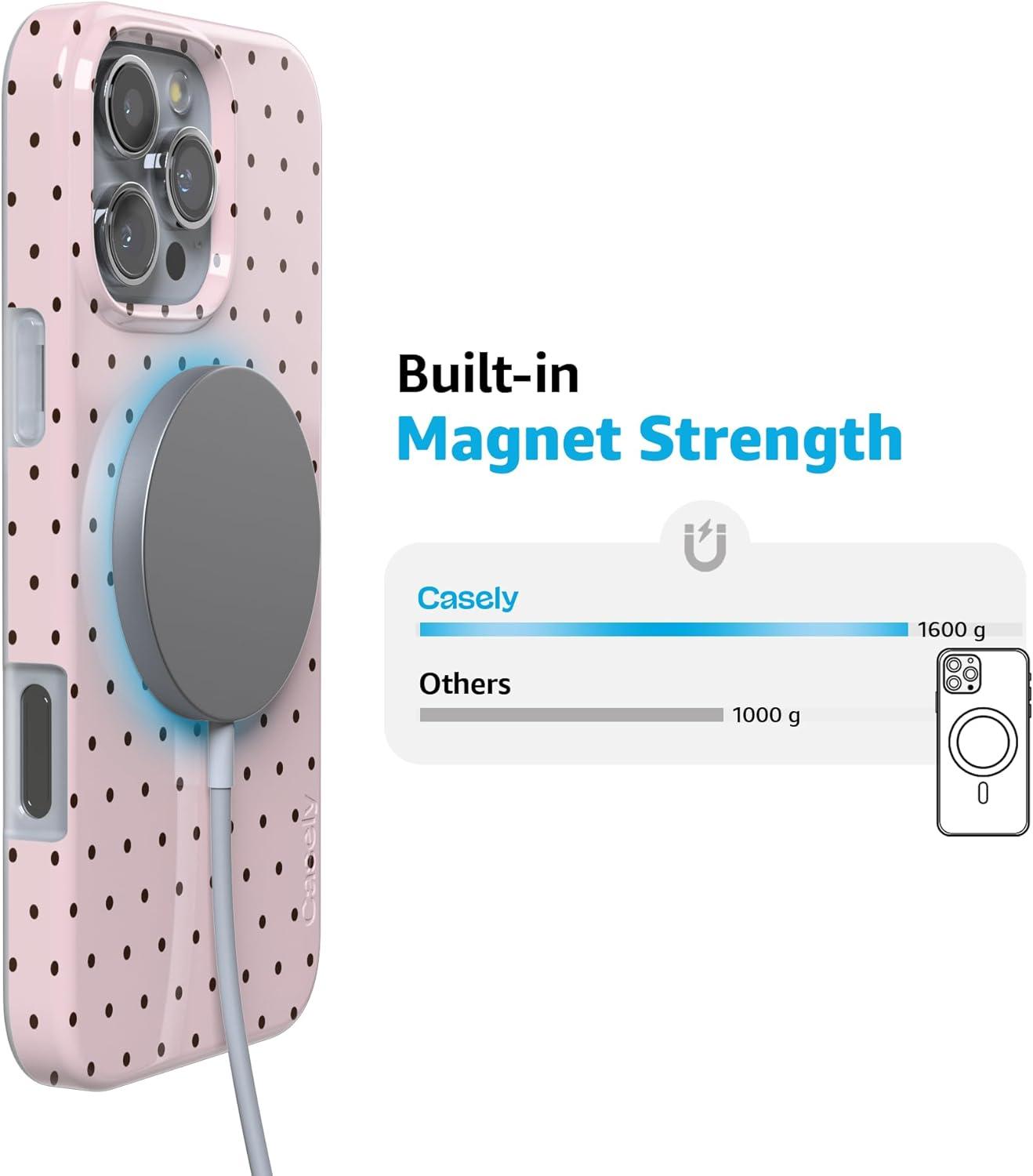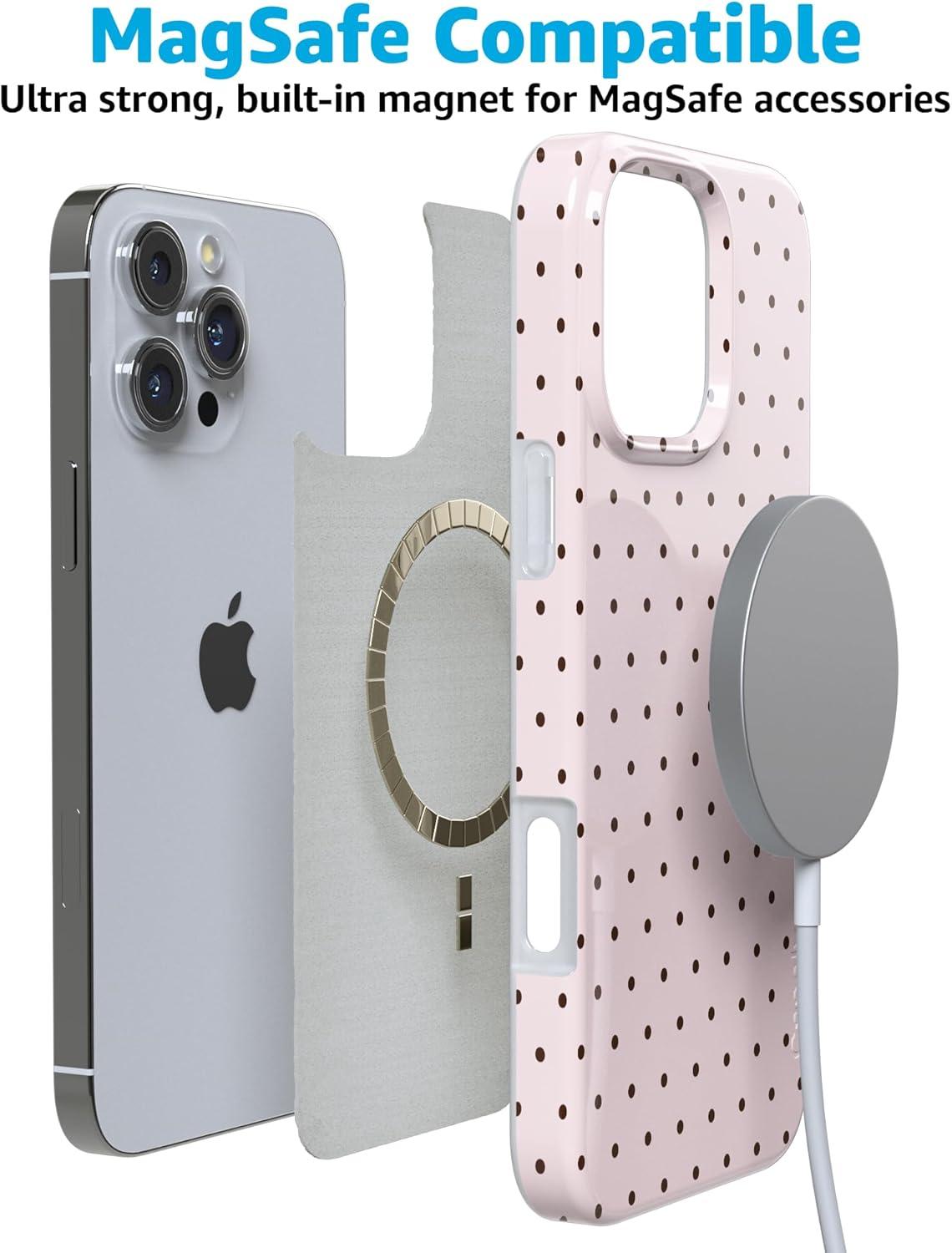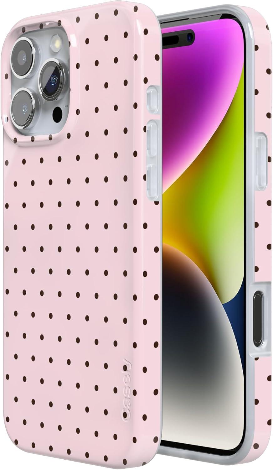 Casely iPhone 16 Pro Case | Into The Wild | White Snow Leopard | Compatible with MagSafe | Classic Ultra Slim Design(On the Dot | Pink Polka Dot)