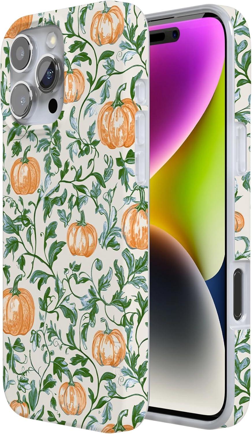 Casely iPhone 16 Pro Case | Into The Wild | White Snow Leopard | Compatible with MagSafe | Classic Ultra Slim Design(Pumpkin Patch | Green Vines)