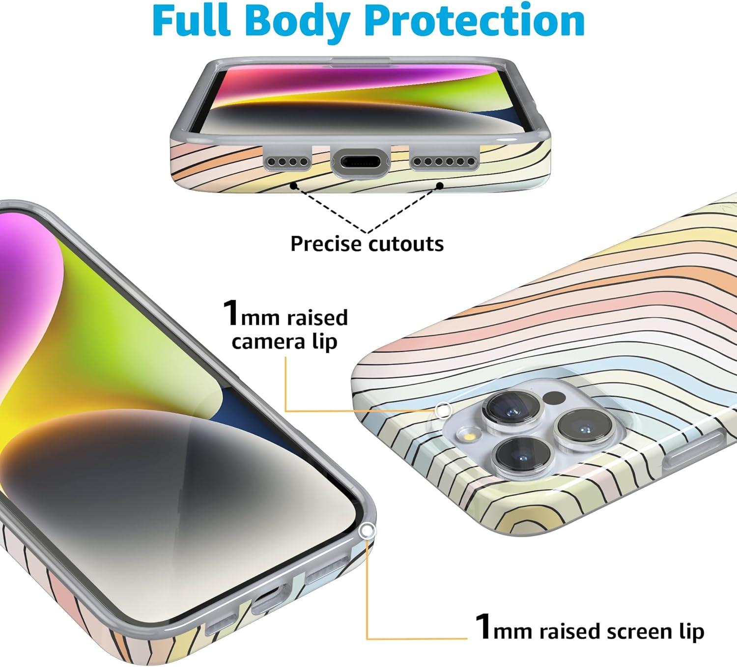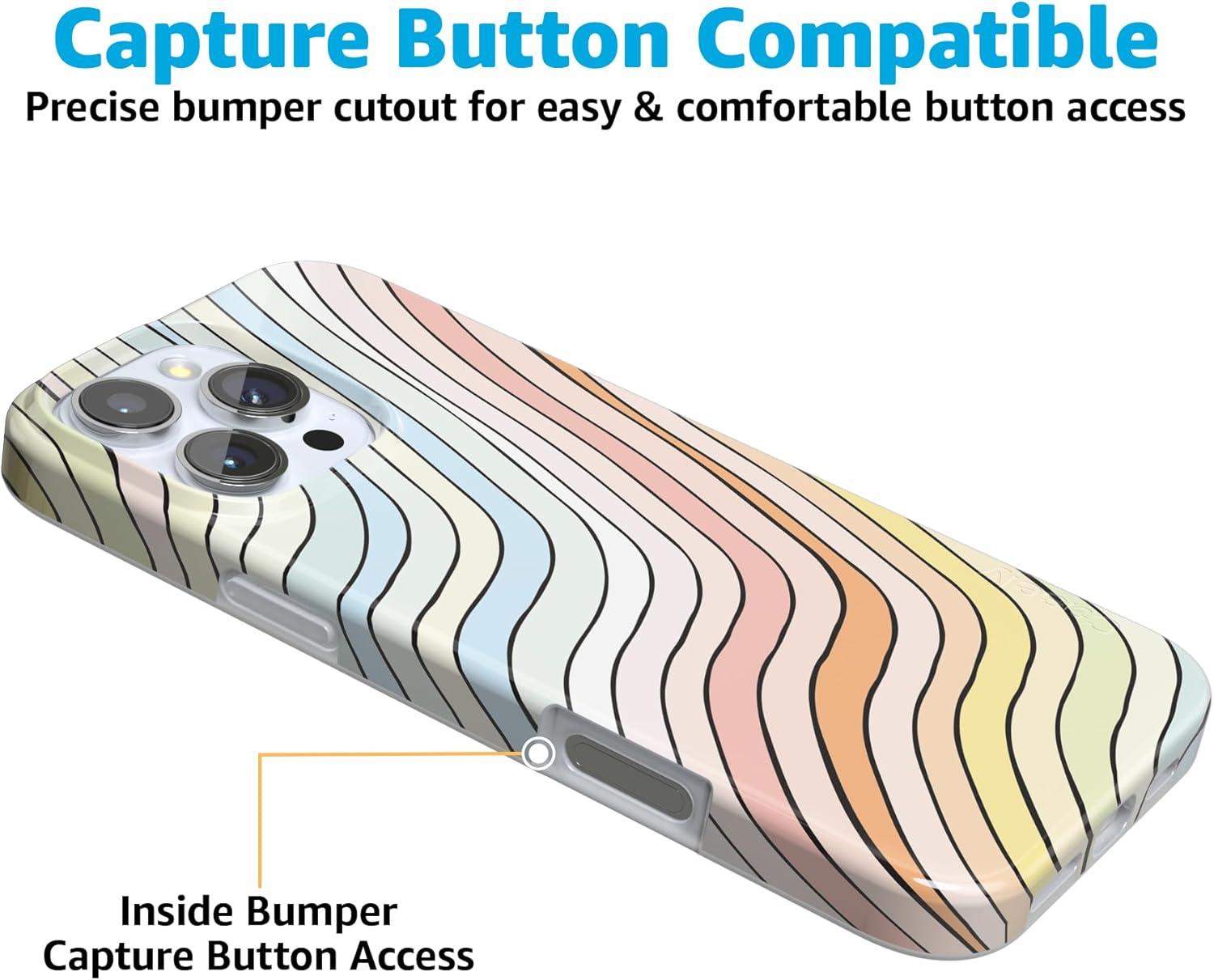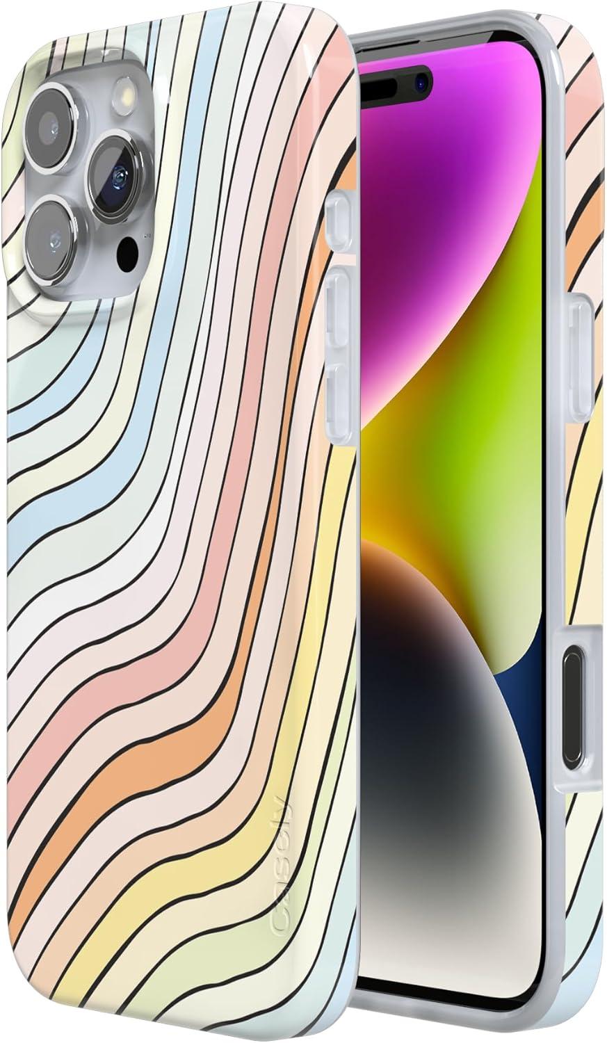 Casely iPhone 16 Pro Case | Into The Wild | White Snow Leopard | Compatible with MagSafe | Classic Ultra Slim Design(Ride The Wave | Pastel Rainbow Lined)