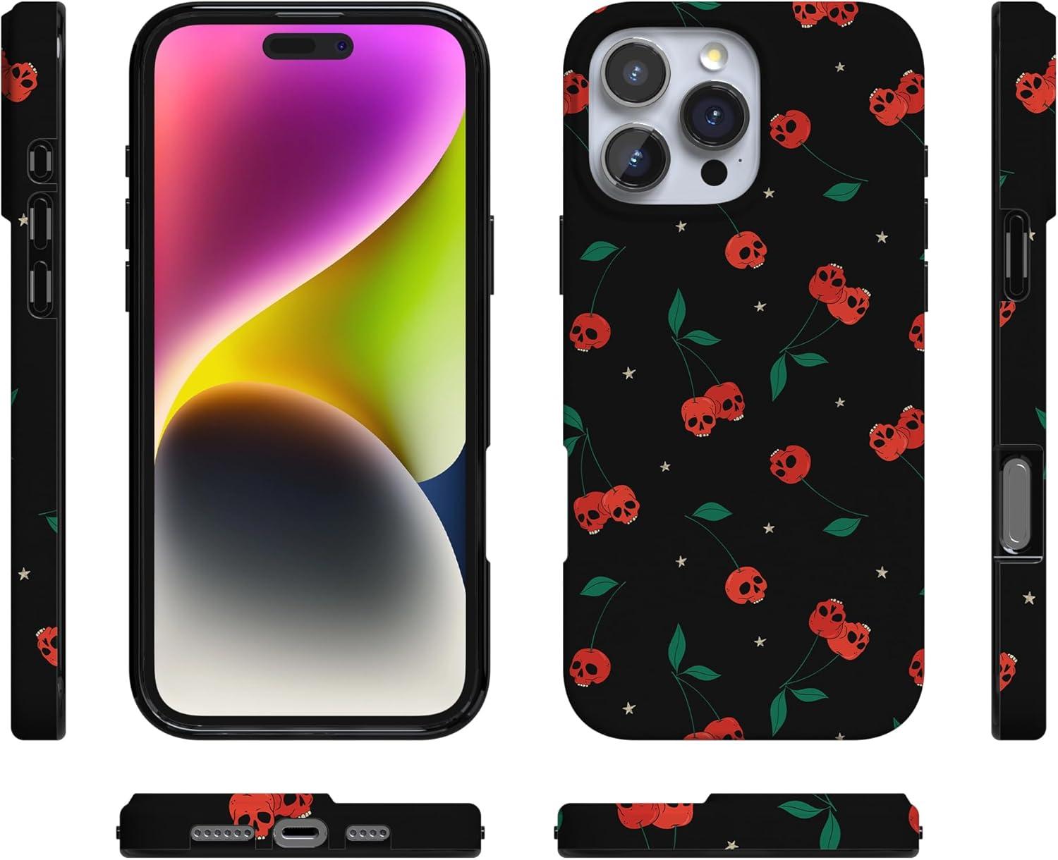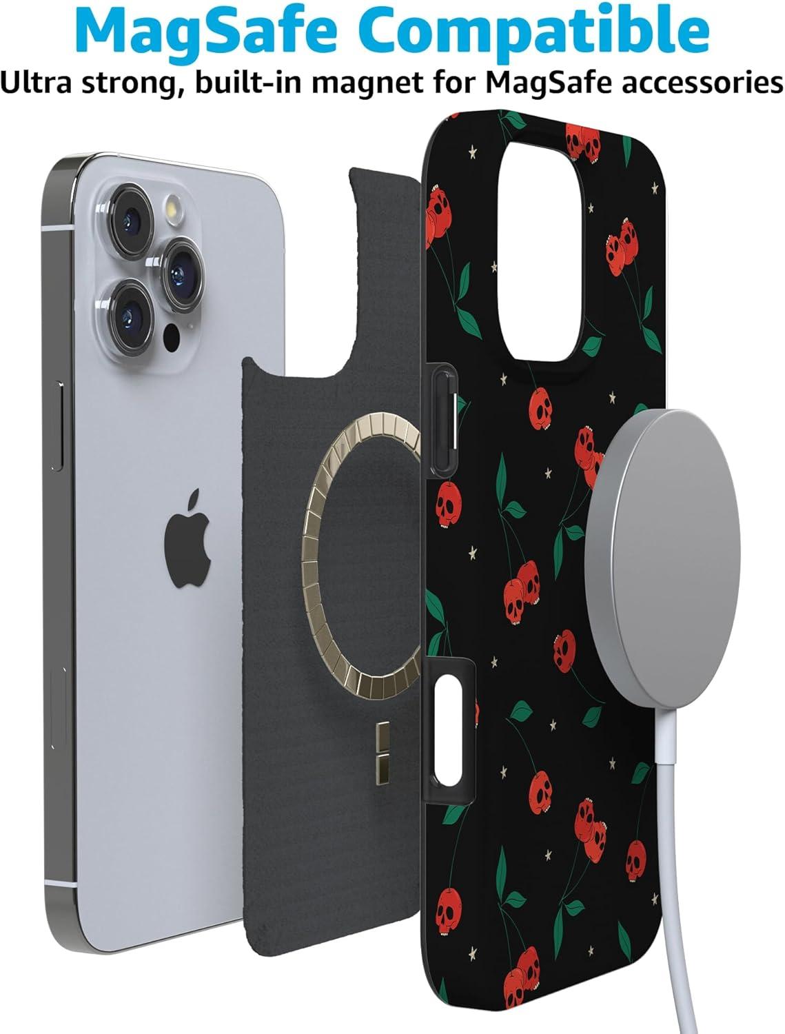 Casely iPhone 16 Pro Case | Into The Wild | White Snow Leopard | Compatible with MagSafe | Classic Ultra Slim Design(Sweet Revenge | Cherry Skulls)