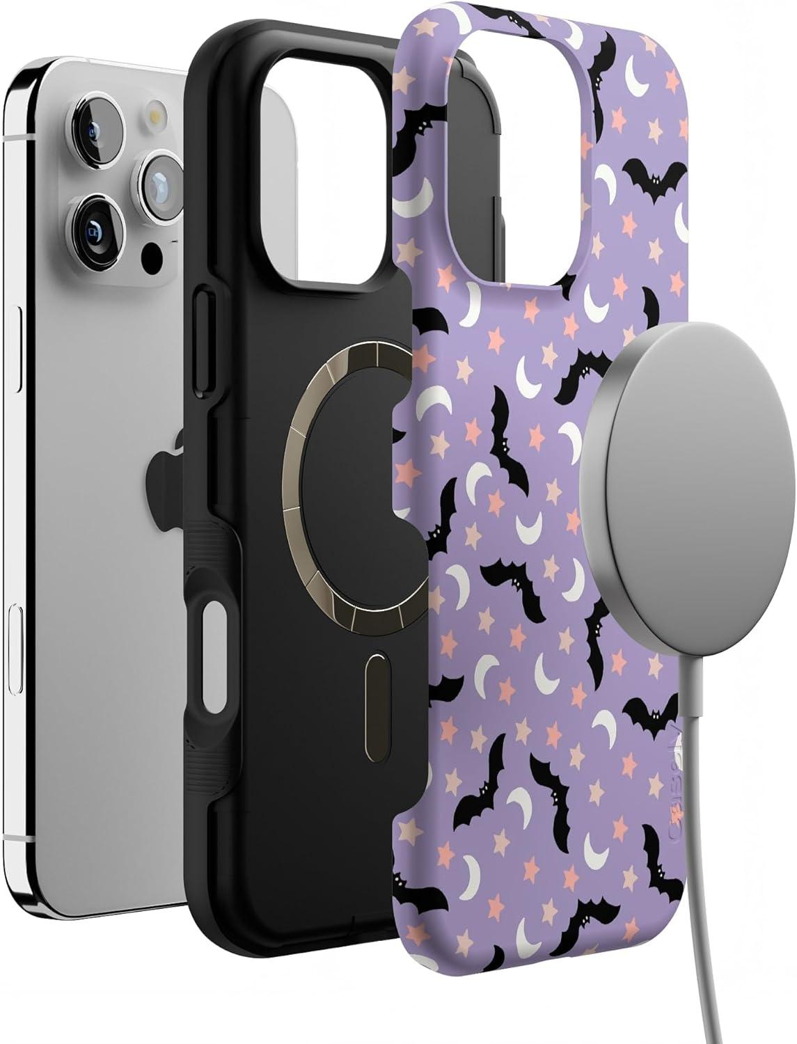 Casely iPhone 16 Pro Case | Midnight Flight | Celestial Bats | Bold Protective Design | MagSafe Compatible Design