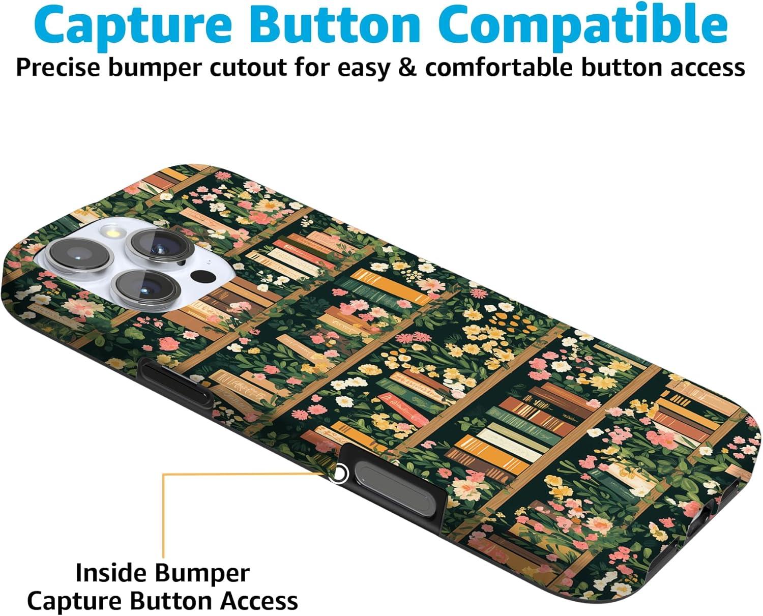 Casely iPhone 16 Pro Case | Moody Monochrome | Bordeaux Rose | Compatible with MagSafe | Classic Ultra Thin Design(Book Nook | Floral Library)