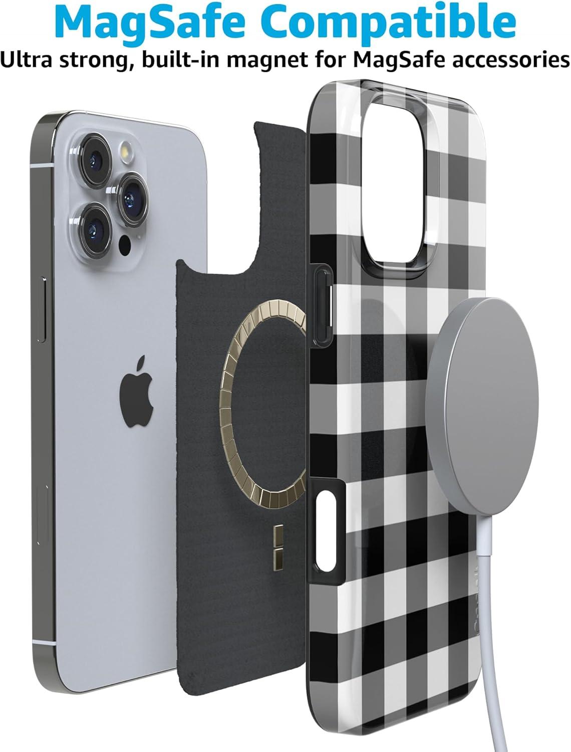 Casely iPhone 16 Pro Case | Moody Monochrome | Bordeaux Rose | Compatible with MagSafe | Classic Ultra Thin Design(Check Me Out | Checkerboard)