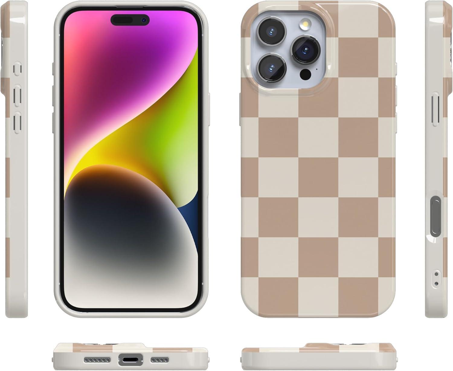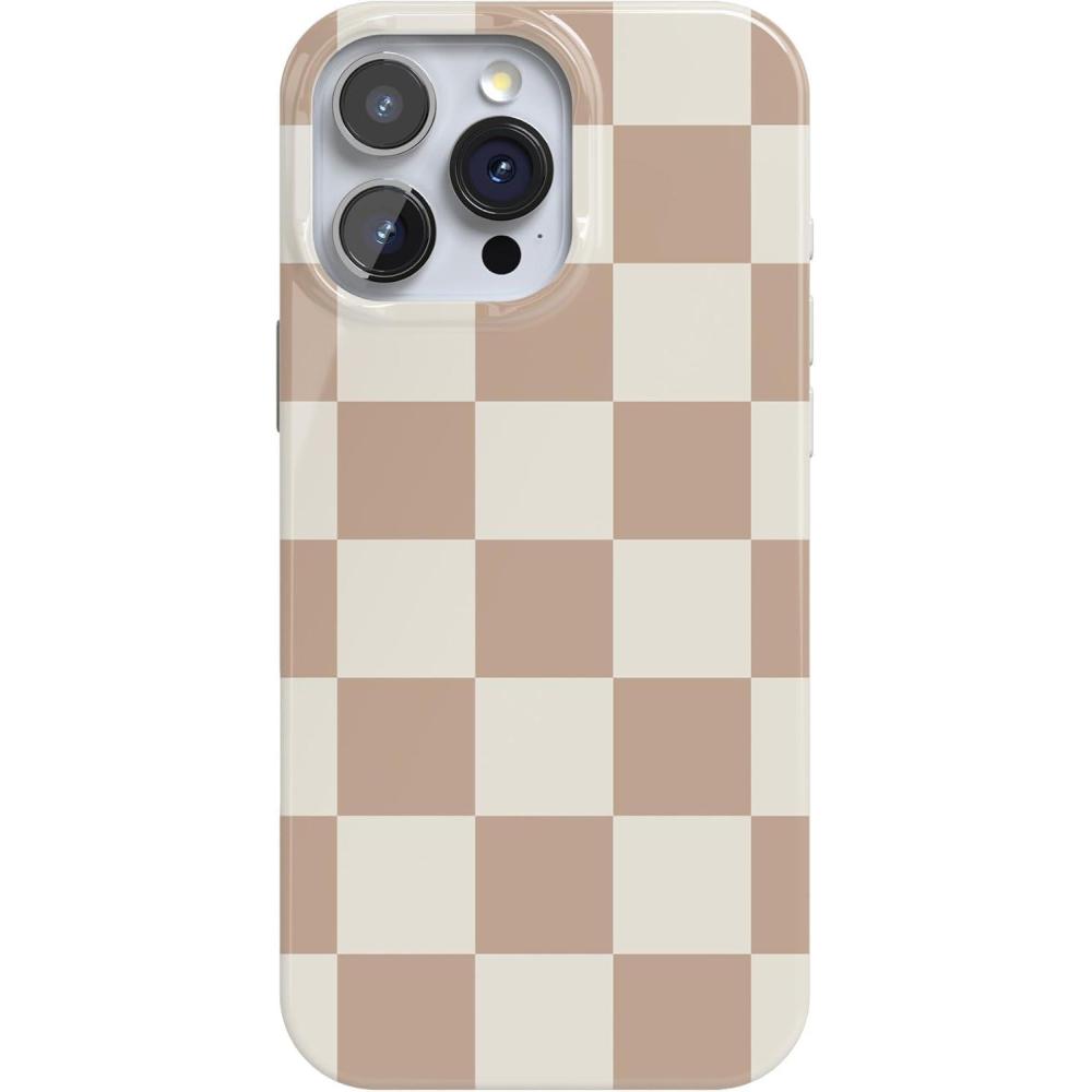 Casely iPhone 16 Pro Case | Moody Monochrome | Bordeaux Rose | Compatible with MagSafe | Classic Ultra Thin Design(Fit Check | Neutral Checkerboard Checkered)