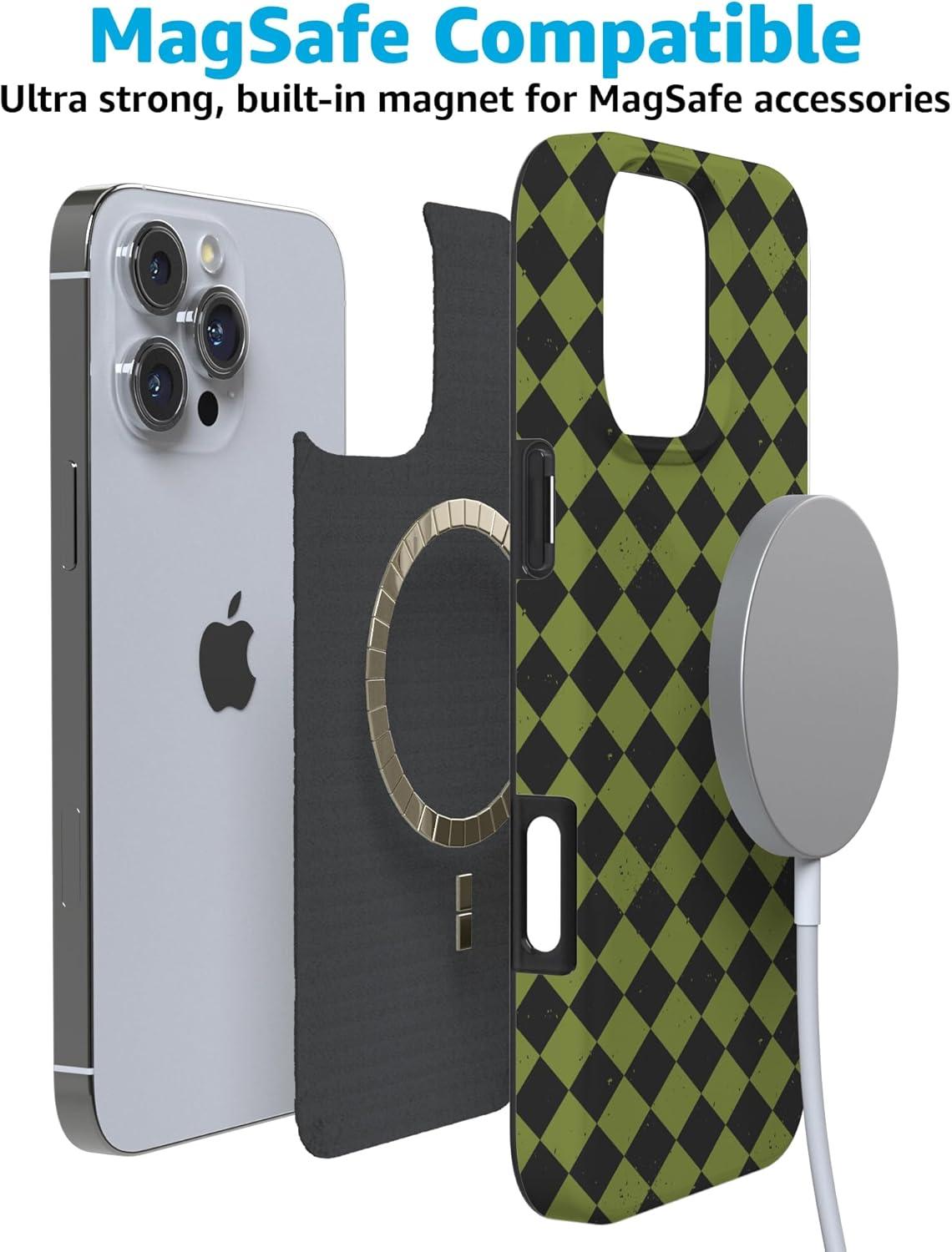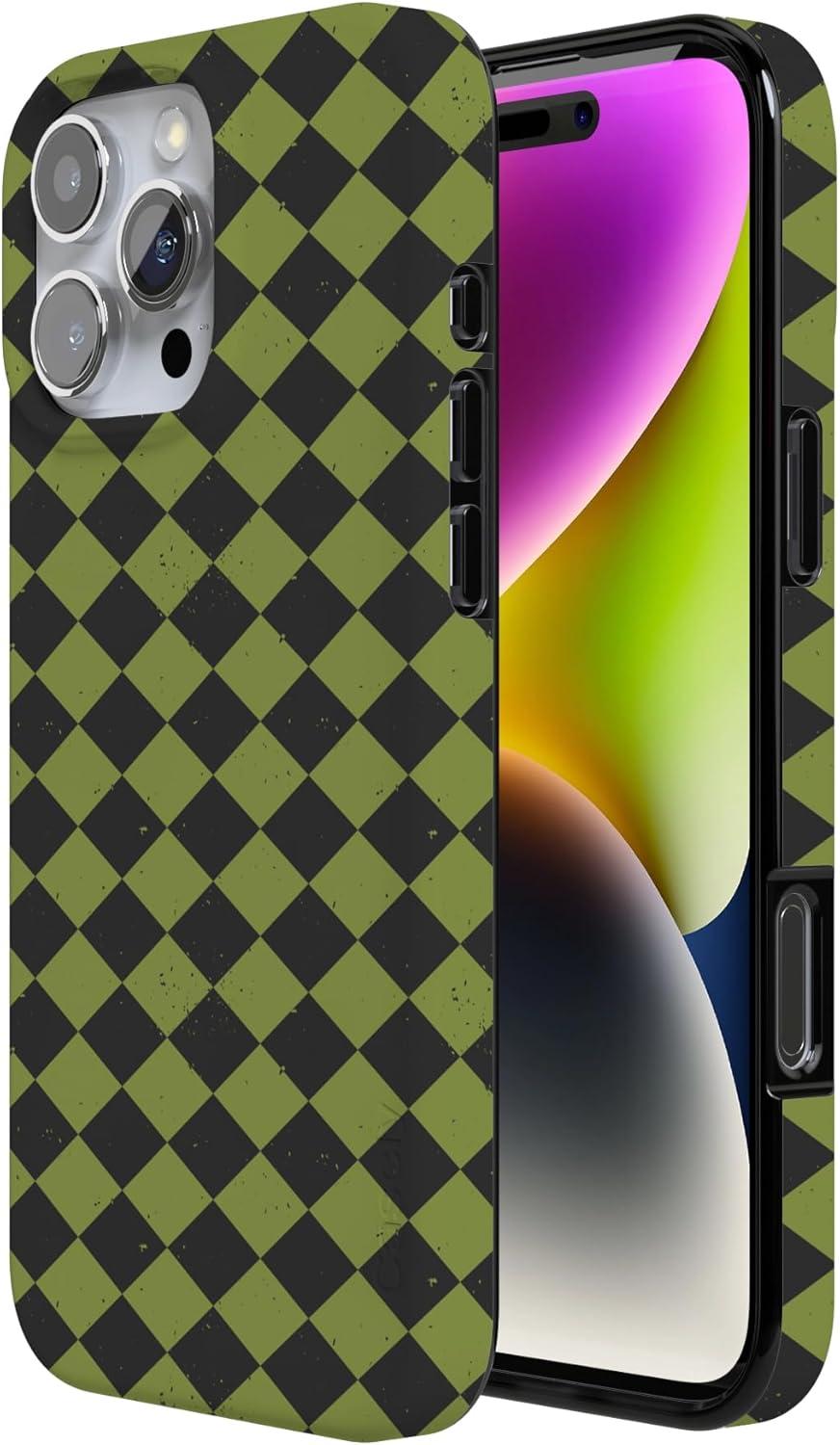 Casely iPhone 16 Pro Case | Moody Monochrome | Bordeaux Rose | Compatible with MagSafe | Classic Ultra Thin Design(Harlequin Wicked Diamond | Black and Green)