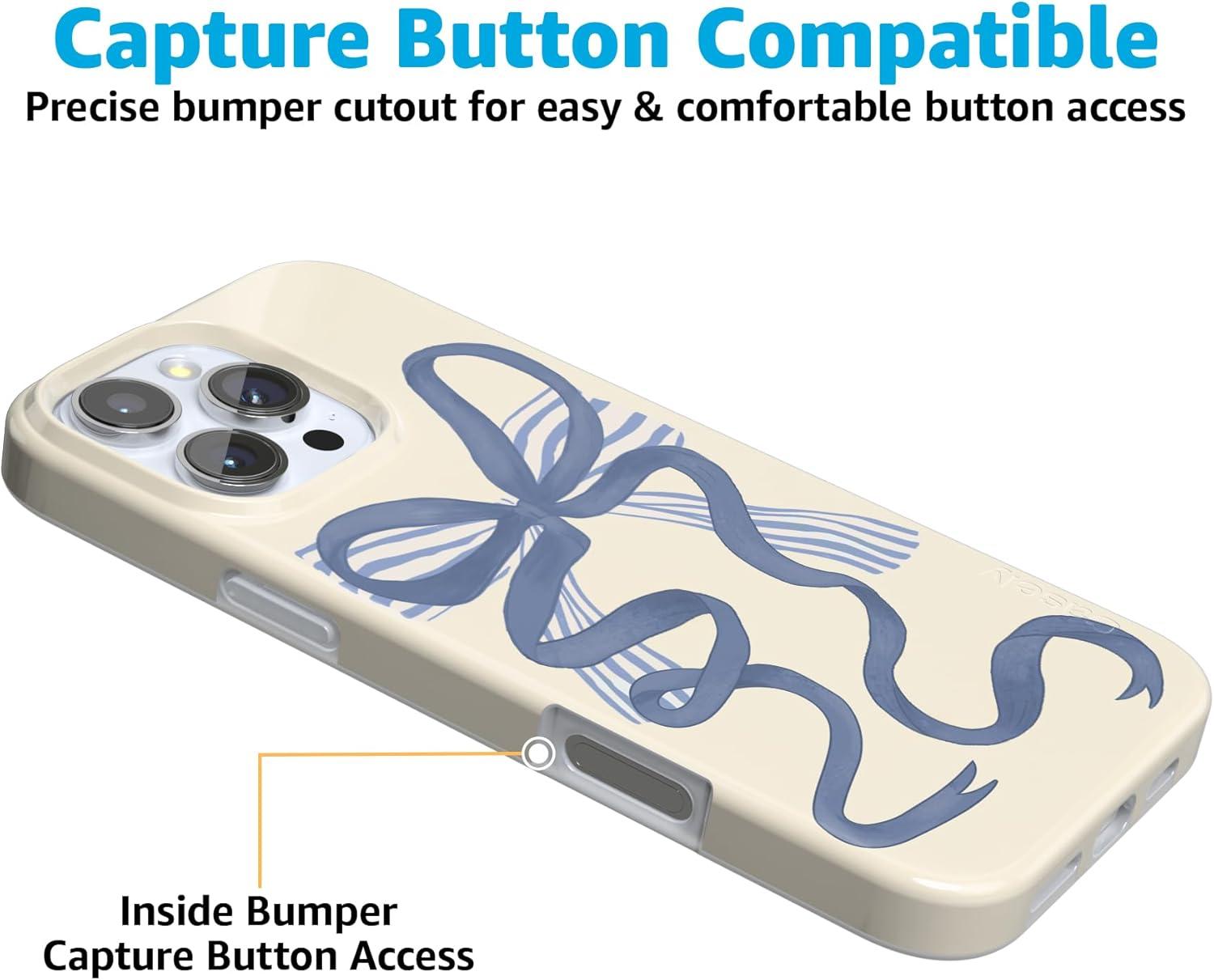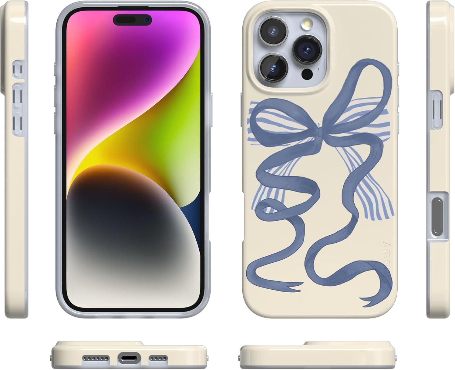 Casely iPhone 16 Pro Case | Moody Monochrome | Bordeaux Rose | Compatible with MagSafe | Classic Ultra Thin Design(Heartstrings | Blue Bow)