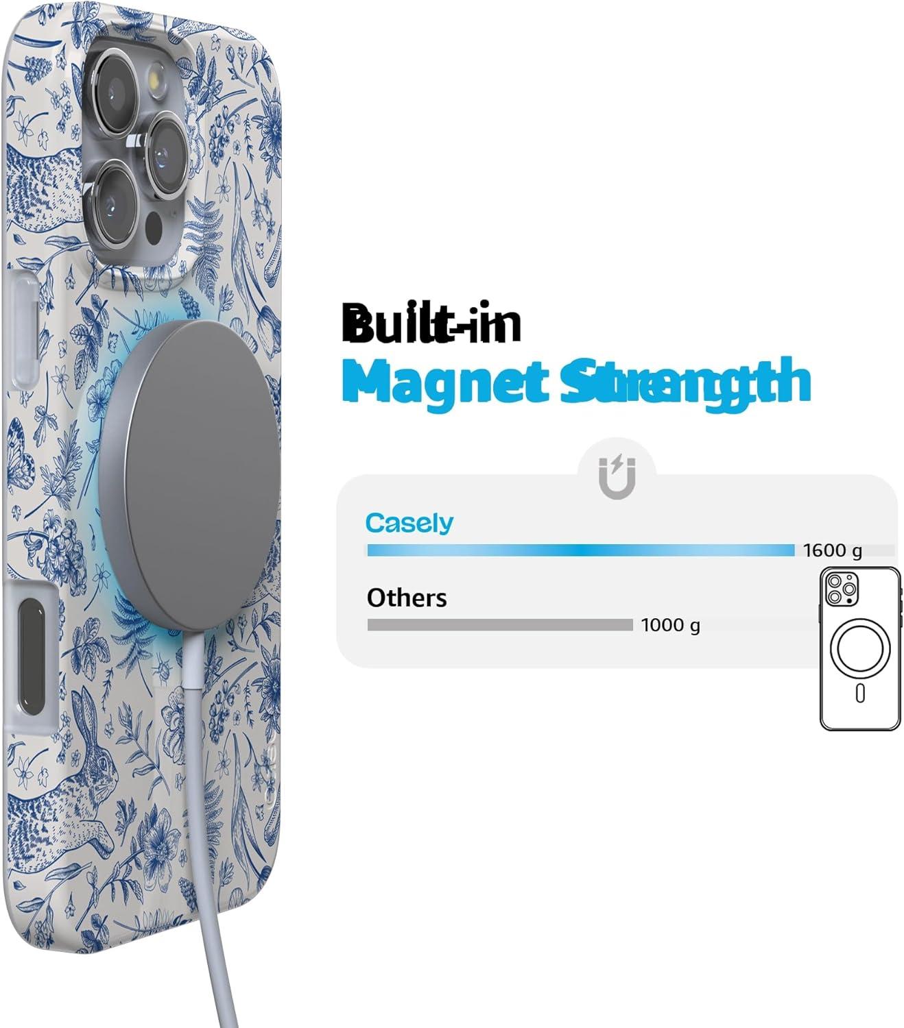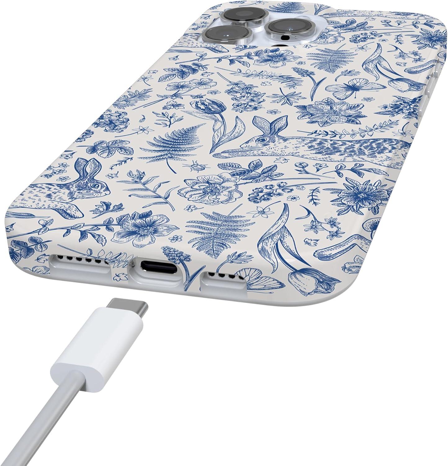 Casely iPhone 16 Pro Case | Moody Monochrome | Bordeaux Rose | Compatible with MagSafe | Classic Ultra Thin Design(Hop & Bloom | Bunny Toile)