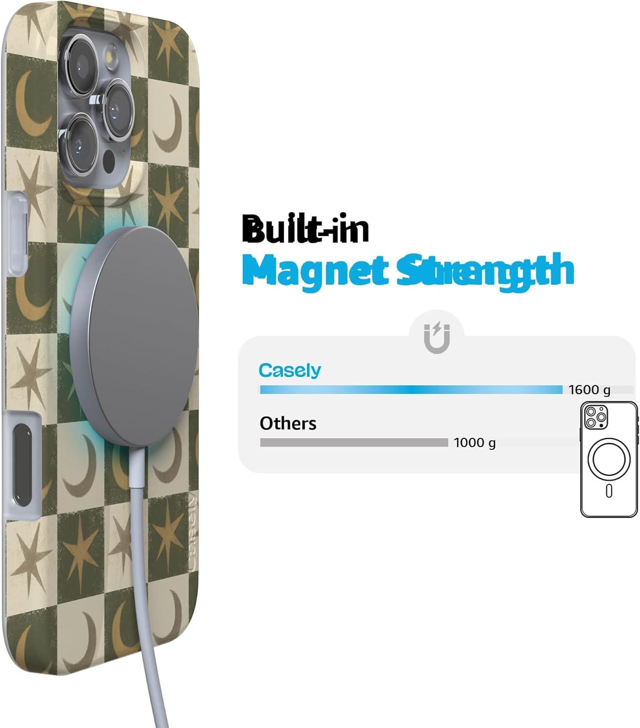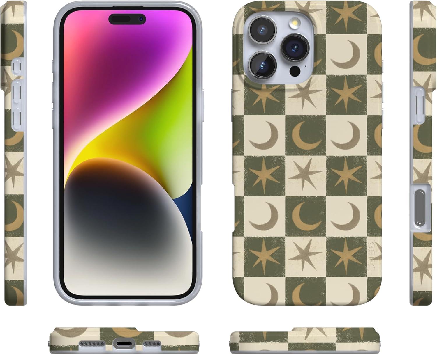 Casely iPhone 16 Pro Case | Moody Monochrome | Bordeaux Rose | Compatible with MagSafe | Classic Ultra Thin Design(Mystic Moonstar | Green Celestial)