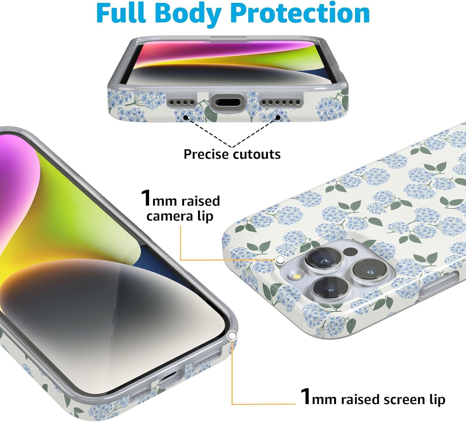 Casely iPhone 16 Pro Case | Moody Monochrome | Bordeaux Rose | Compatible with MagSafe | Classic Ultra Thin Design(Nantucket Cottage | Blue Hydrangea)