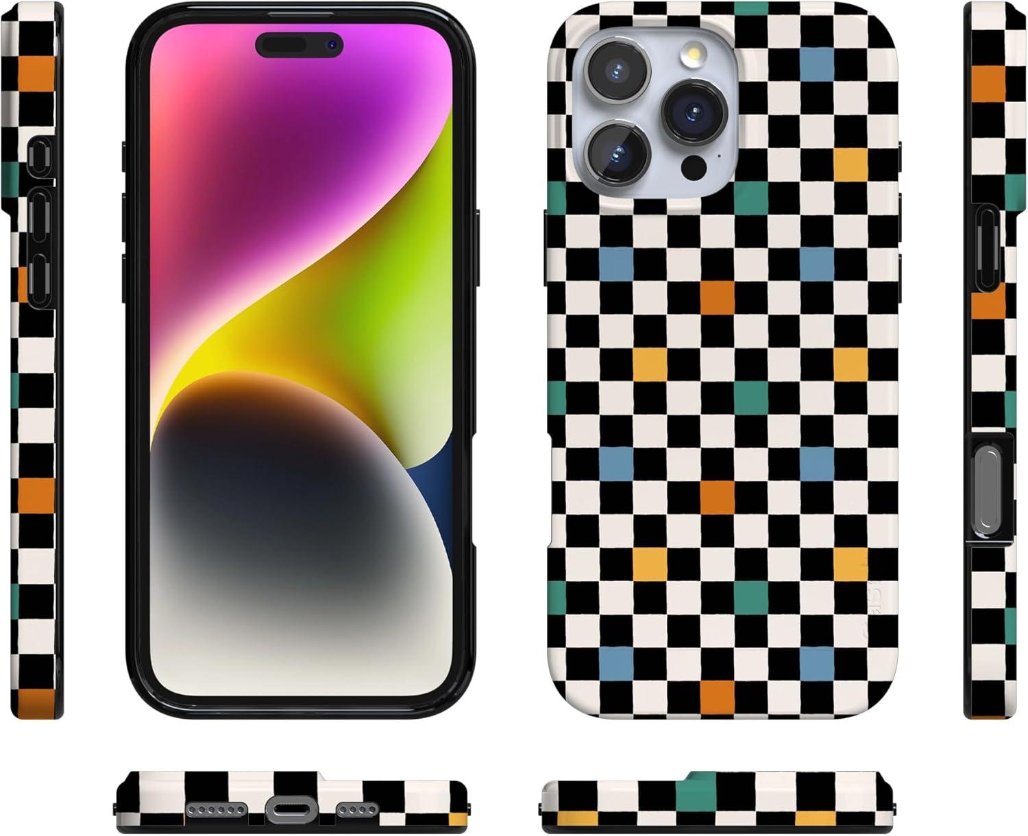 Casely iPhone 16 Pro Case | Moody Monochrome | Bordeaux Rose | Compatible with MagSafe | Classic Ultra Thin Design(Old Skool | Retro Checkerboard)