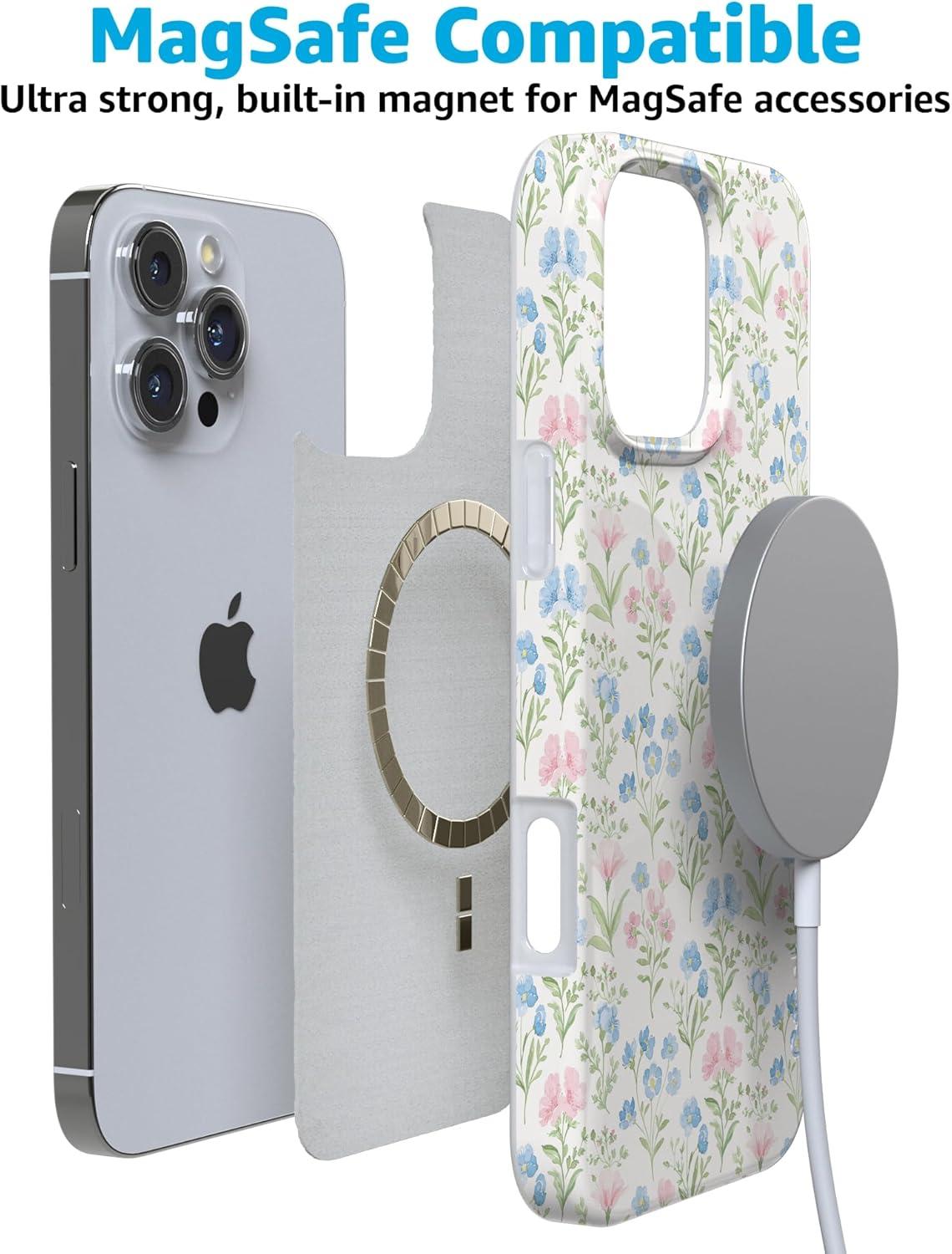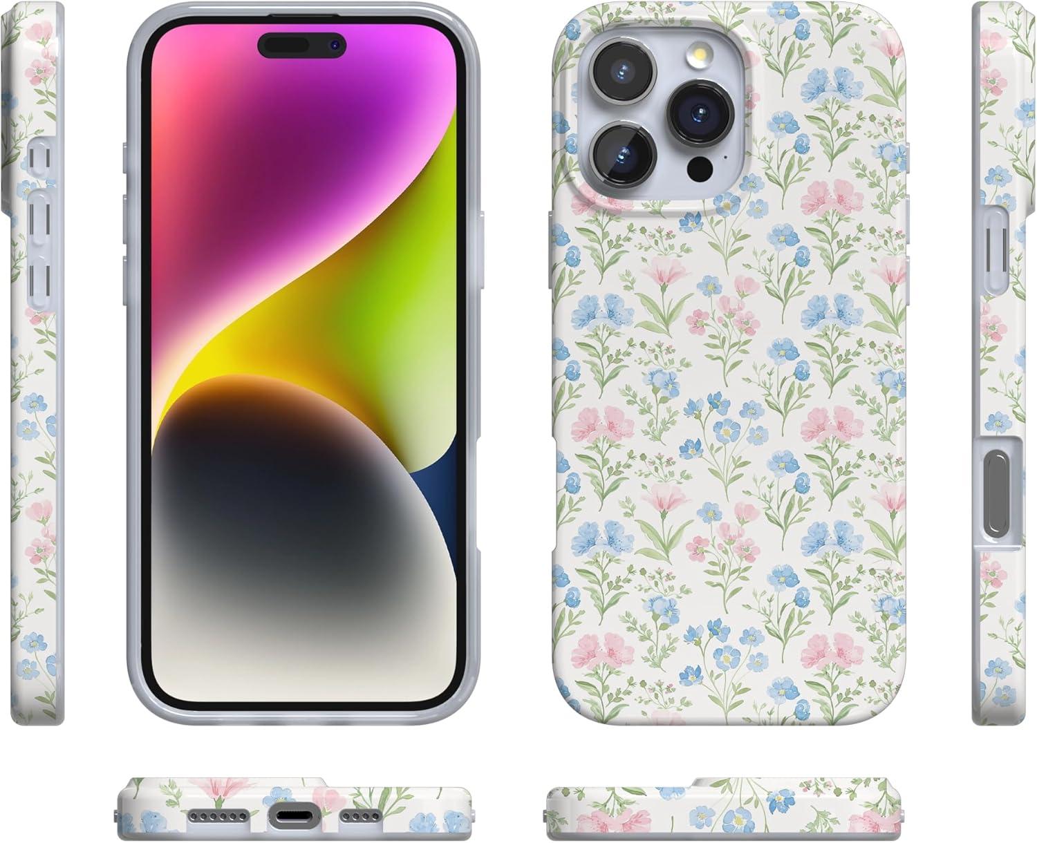 Casely iPhone 16 Pro Case | Moody Monochrome | Bordeaux Rose | Compatible with MagSafe | Classic Ultra Thin Design(Pastel Garden | Sunday Best)