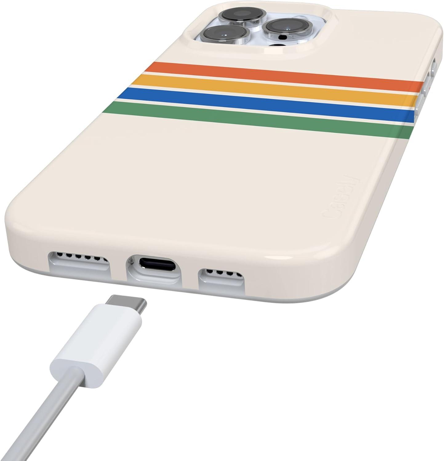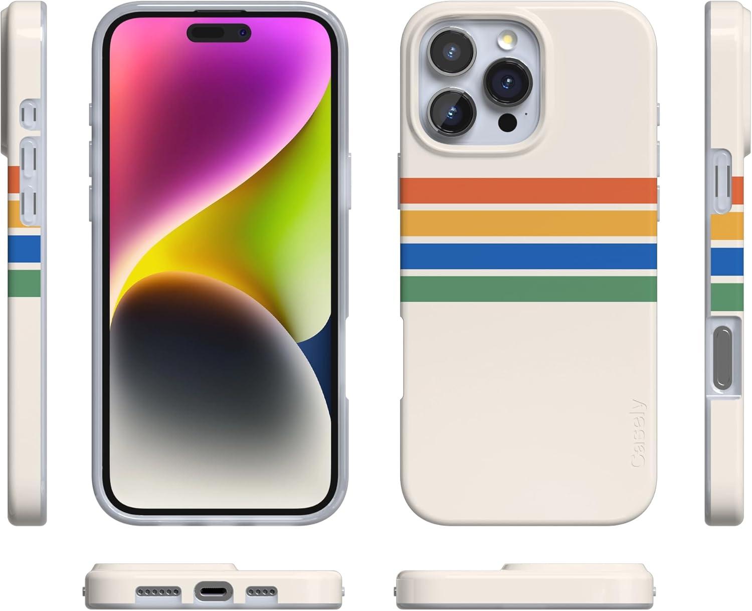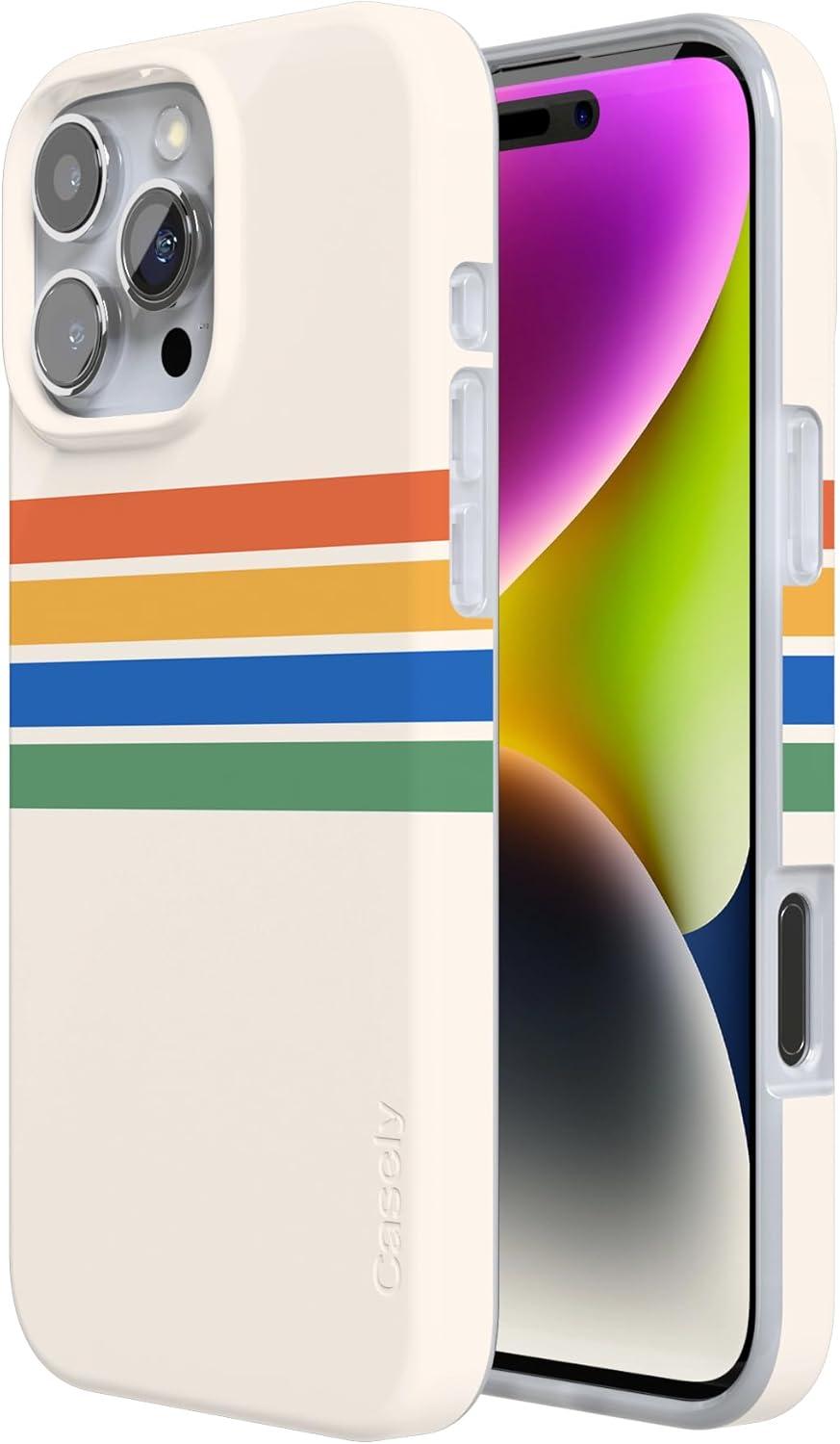Casely iPhone 16 Pro Case | Moody Monochrome | Bordeaux Rose | Compatible with MagSafe | Classic Ultra Thin Design(Totally Groovy | Rainbow Stripes Color Block)