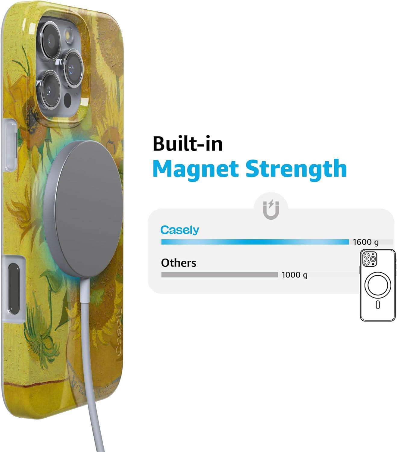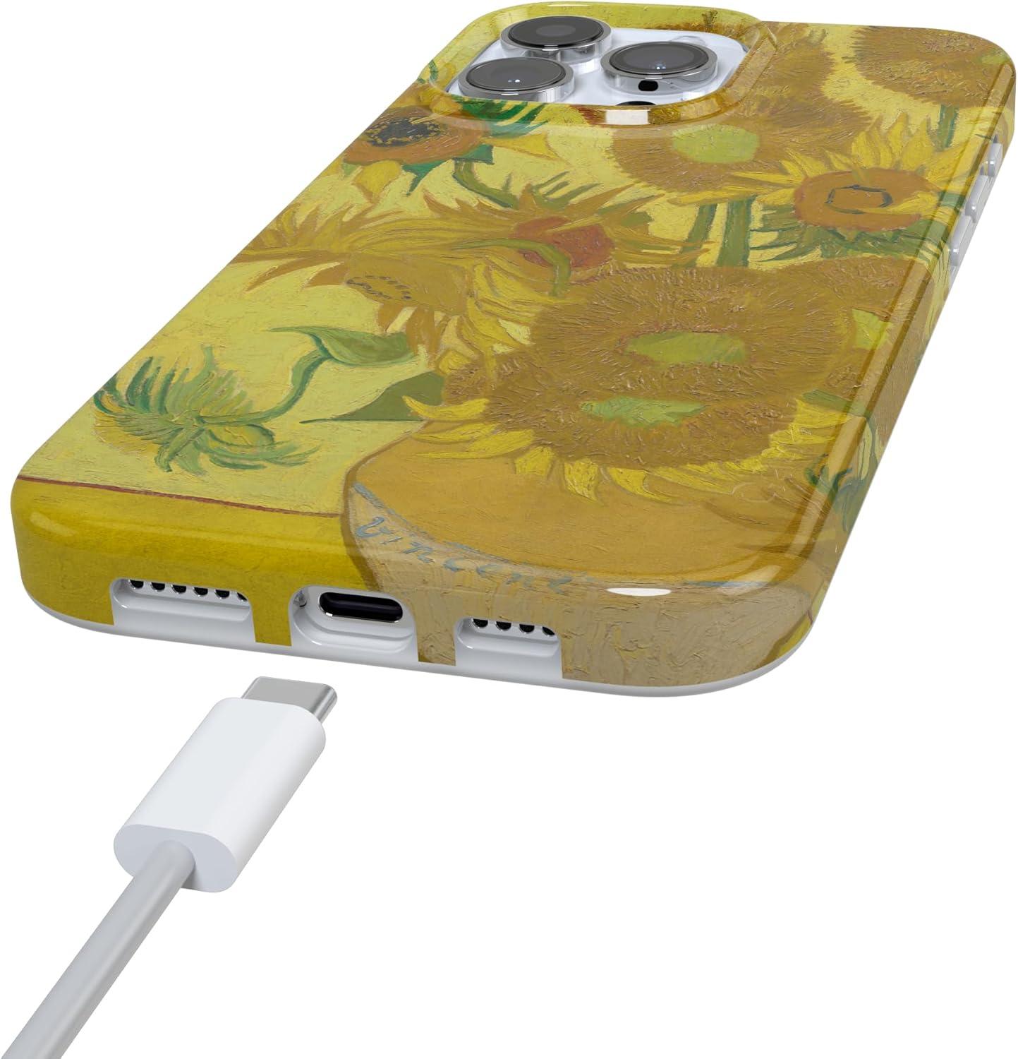 Casely iPhone 16 Pro Case | Moody Monochrome | Bordeaux Rose | Compatible with MagSafe | Classic Ultra Thin Design(Van Gogh | Sunflowers Floral)