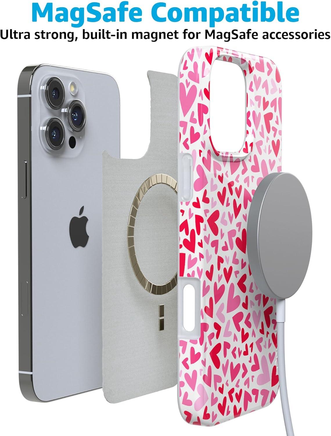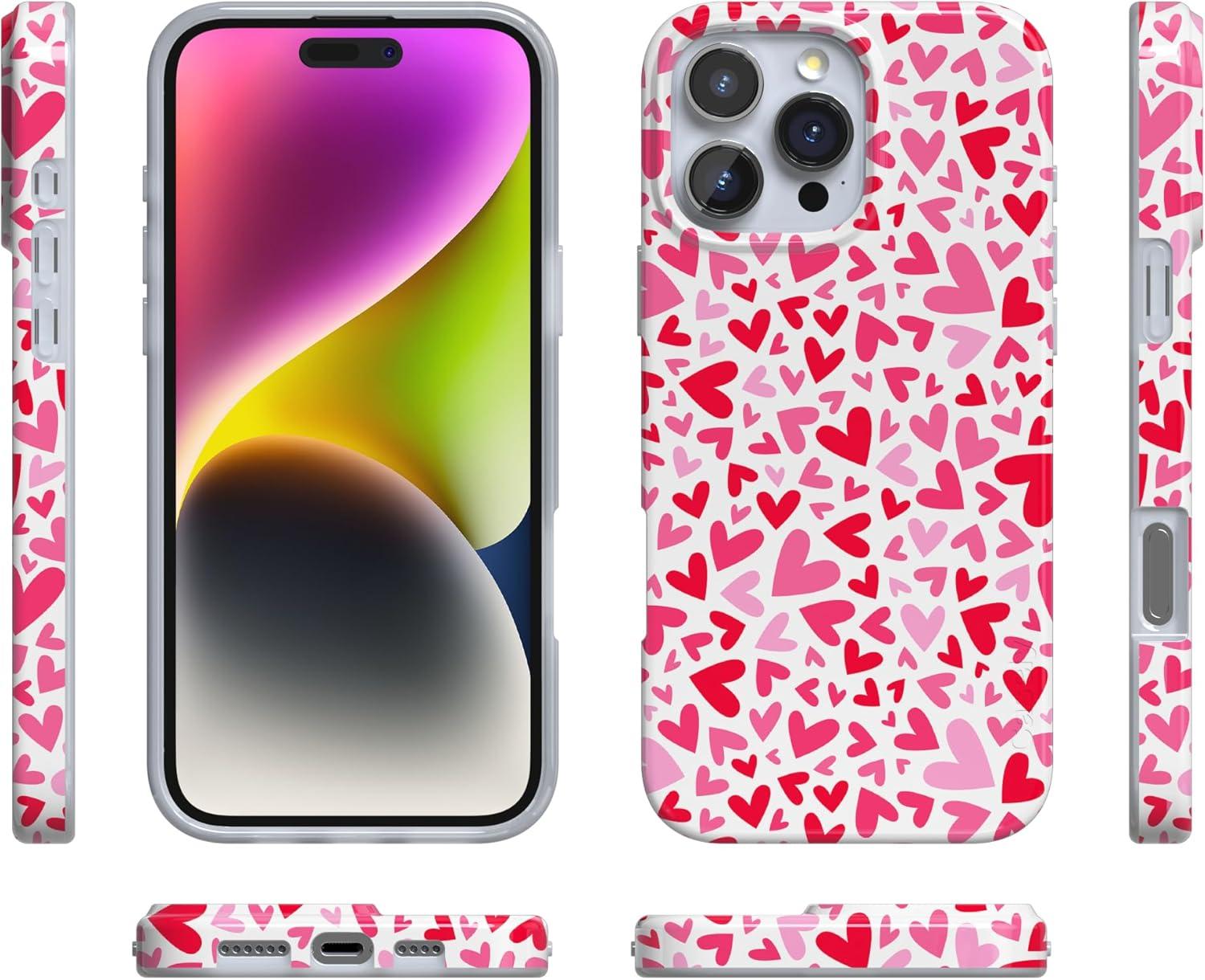 Casely iPhone 16 Pro Case | Moody Monochrome | Bordeaux Rose | Compatible with MagSafe | Classic Ultra Thin Design(XOXO | Candy Hearts)