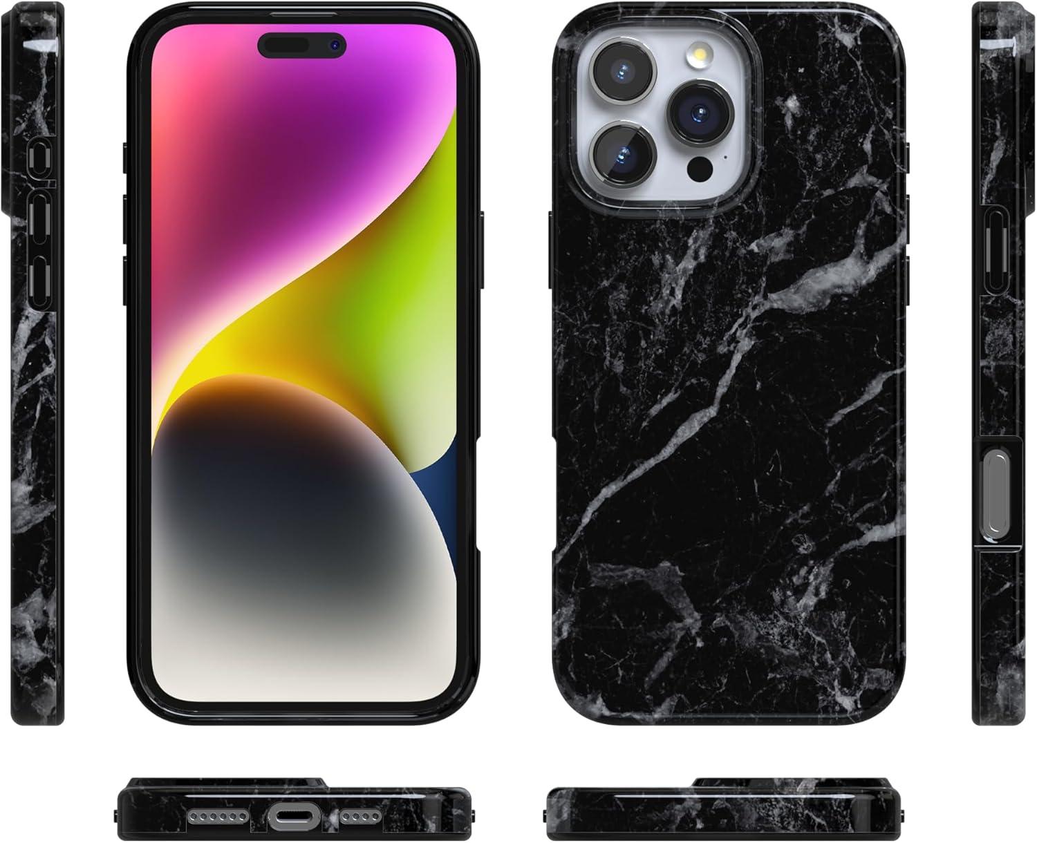 Casely iPhone 16 Pro Case | Moody Monochrome | in The Grove | Compatible with MagSafe | Classic Ultra Thin Design(Black Pearl Marble)
