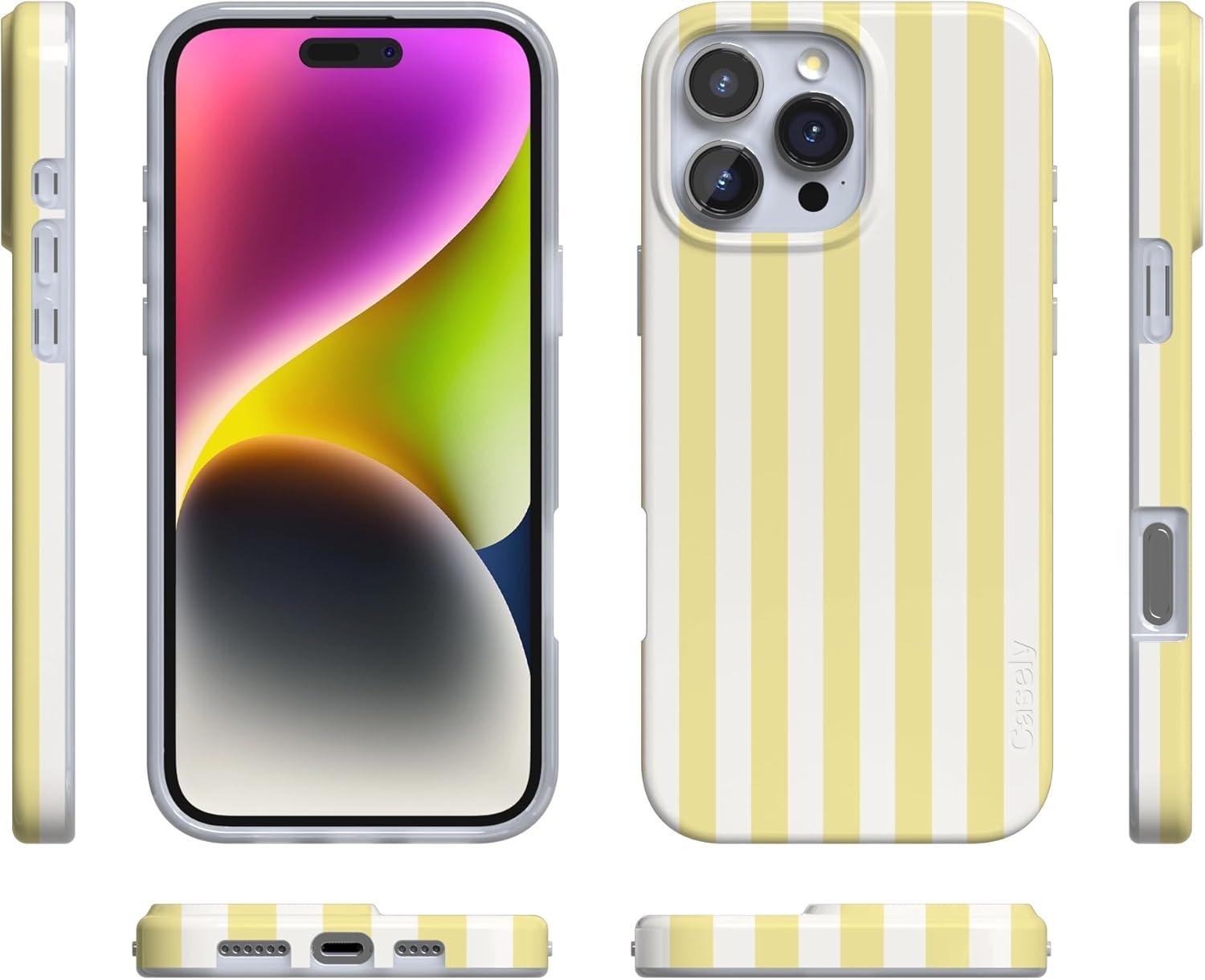 Casely iPhone 16 Pro Case | Moody Monochrome | in The Grove | Compatible with MagSafe | Classic Ultra Thin Design(Butter Yellow Stripes | Sunday Best)