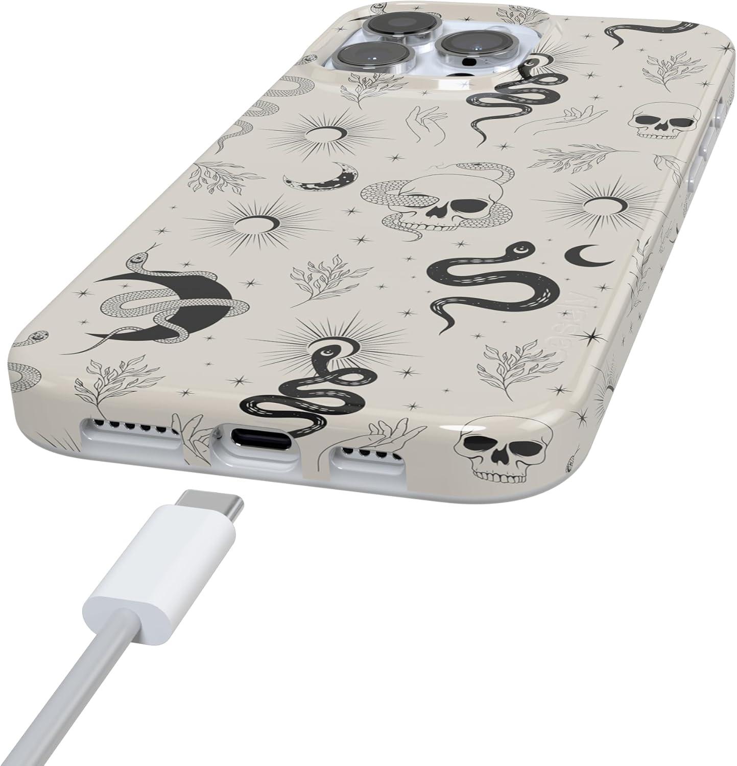 Casely iPhone 16 Pro Case | Moody Monochrome | in The Grove | Compatible with MagSafe | Classic Ultra Thin Design(No Further Explanation | Snakes & Skulls)