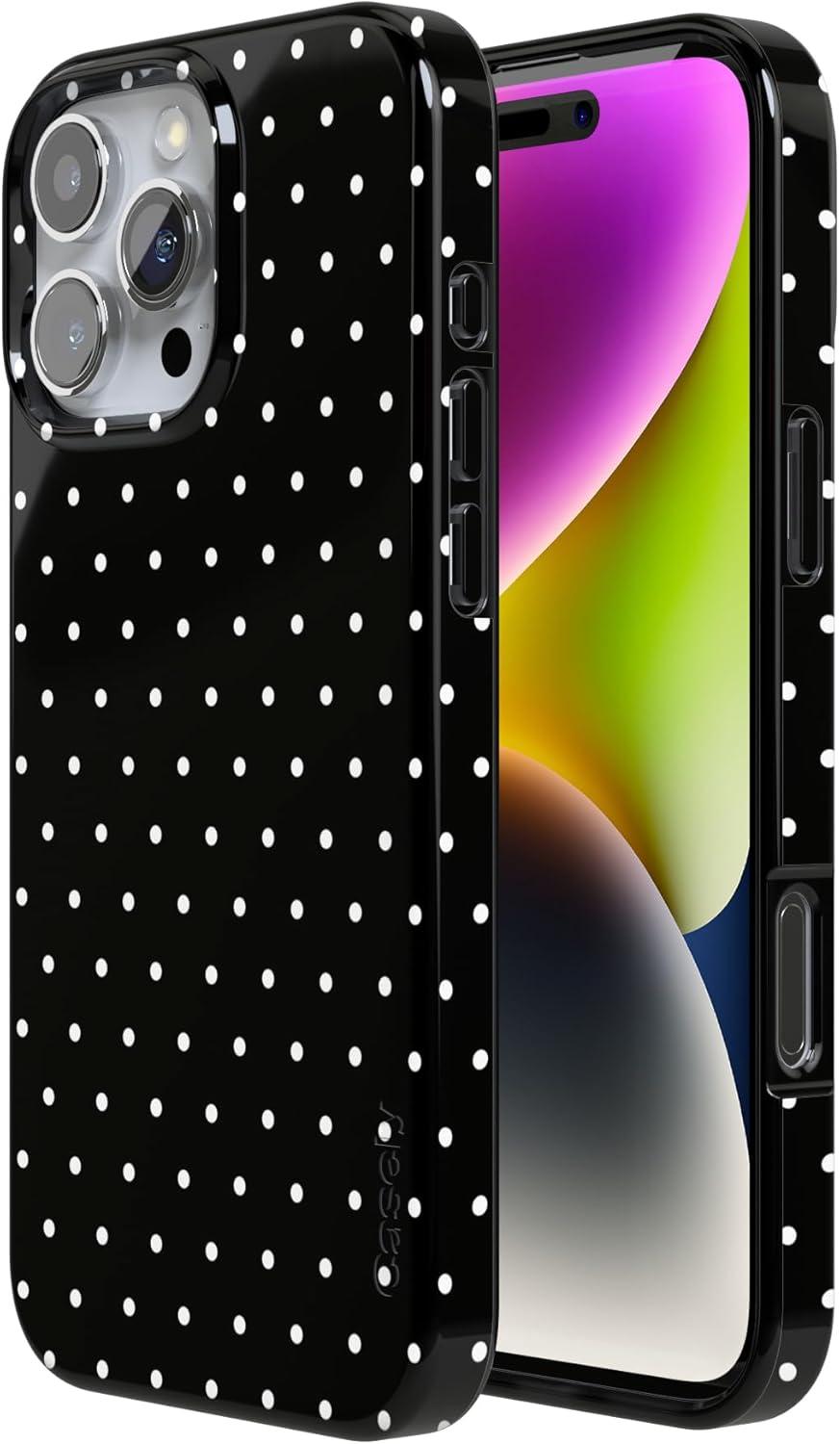 Casely iPhone 16 Pro Case | Moody Monochrome | in The Grove | Compatible with MagSafe | Classic Ultra Thin Design(On the Dot | Black Polka Dot)