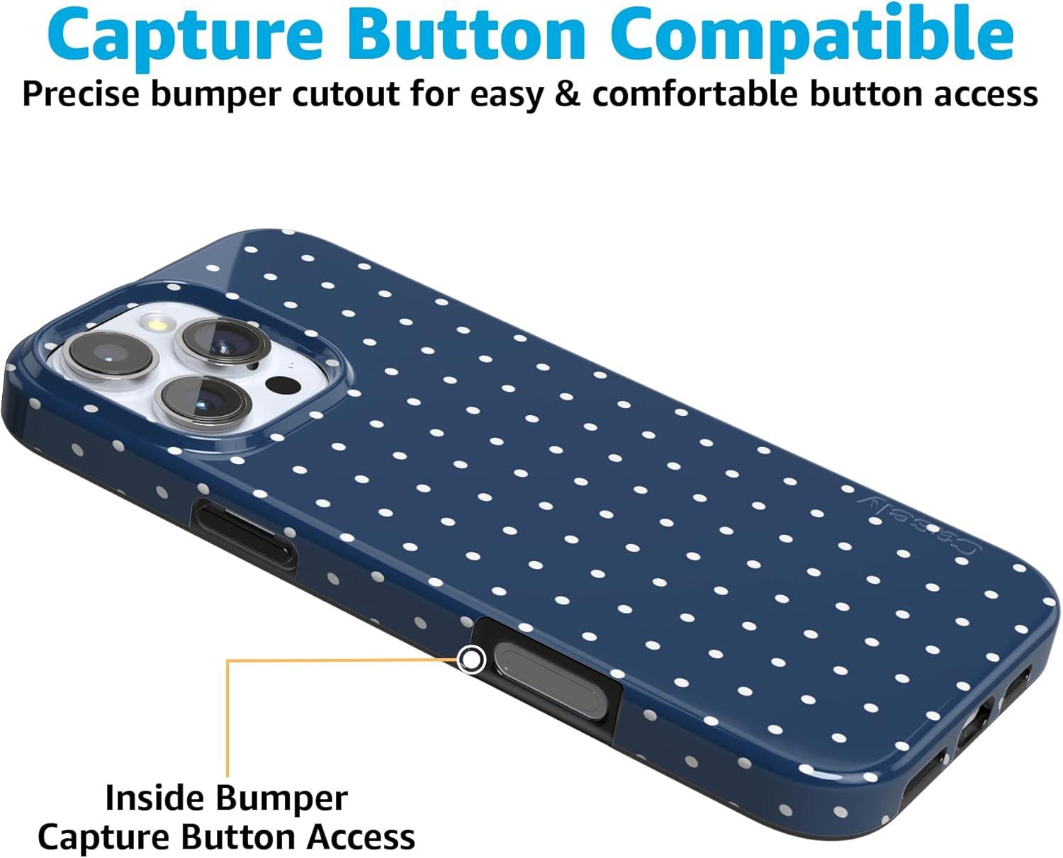 Casely iPhone 16 Pro Case | Moody Monochrome | in The Grove | Compatible with MagSafe | Classic Ultra Thin Design(On the Dot | Navy Polka Dot)