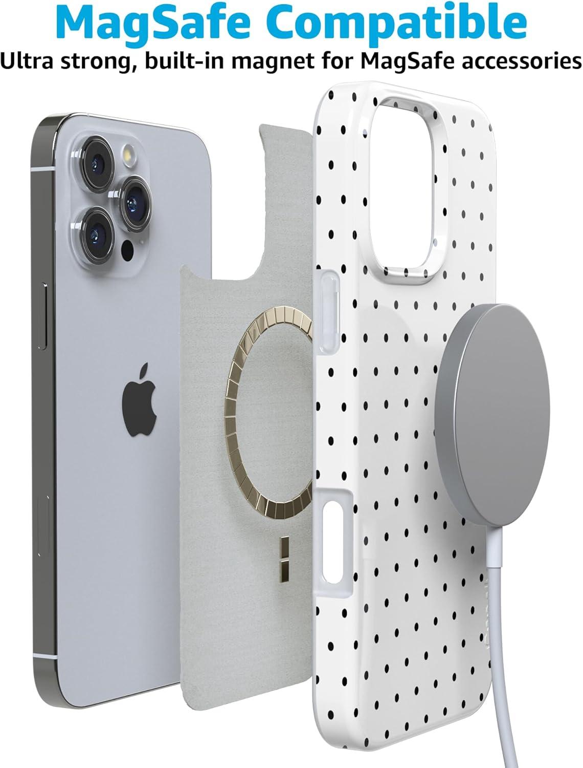 Casely iPhone 16 Pro Case | Moody Monochrome | in The Grove | Compatible with MagSafe | Classic Ultra Thin Design(On the Dot | White Polka Dot)