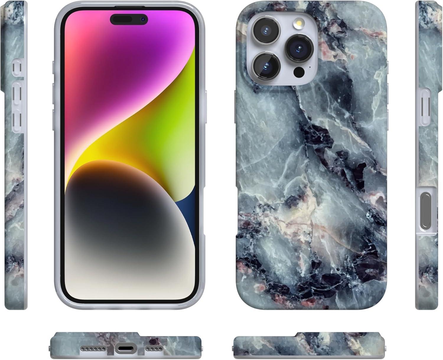 Casely iPhone 16 Pro Case | Moody Monochrome | Twilight Flora | Compatible with MagSafe | Classic Ultra Thin Design(Deep Sea | Blue Marble)
