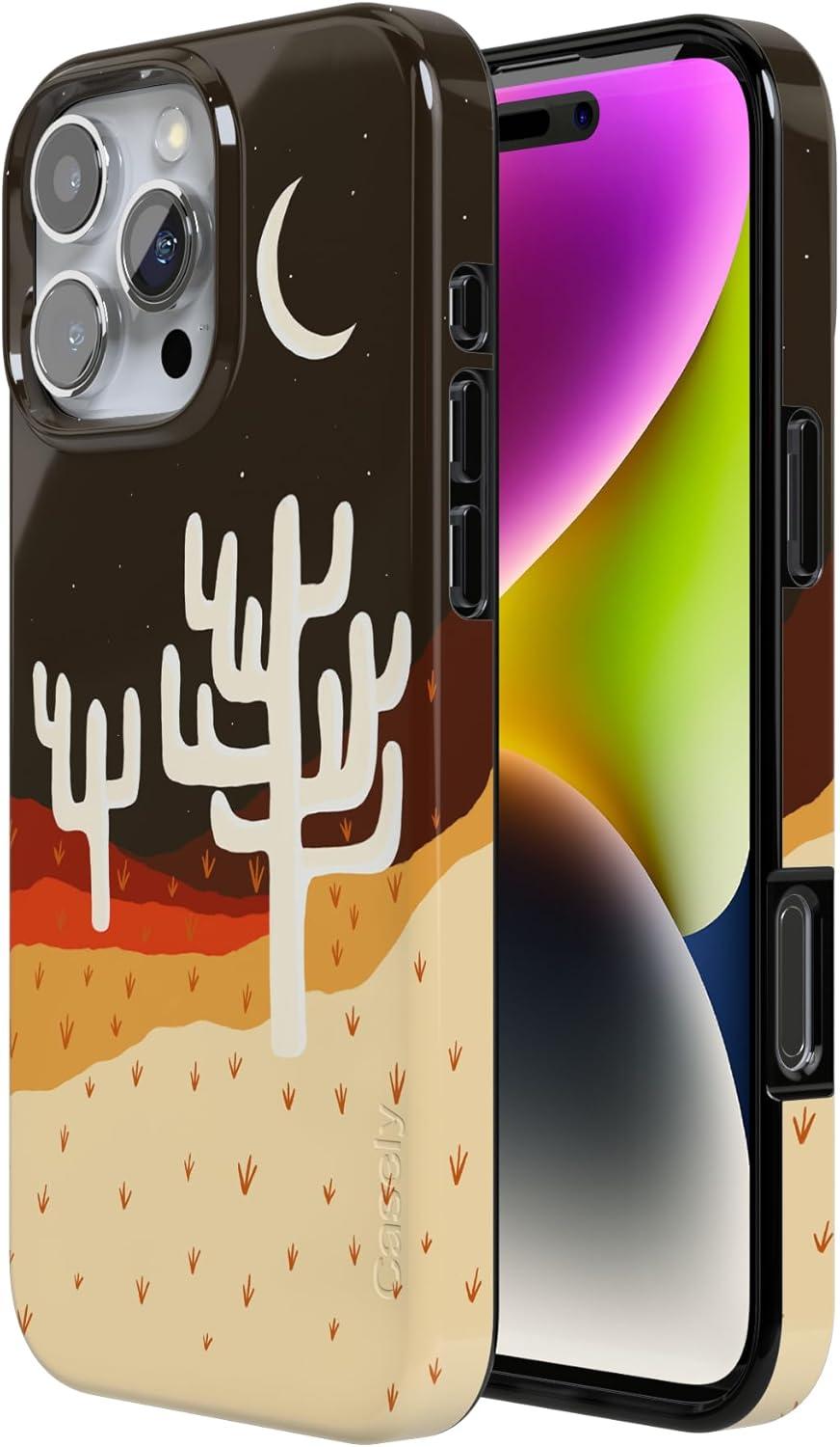 Casely iPhone 16 Pro Case | Moody Monochrome | Twilight Flora | Compatible with MagSafe | Classic Ultra Thin Design(Desert Nights | Cactus Colorblock)
