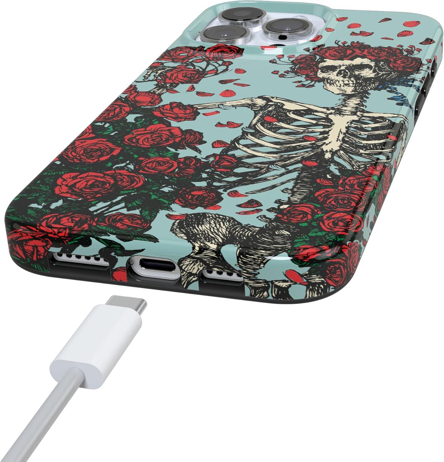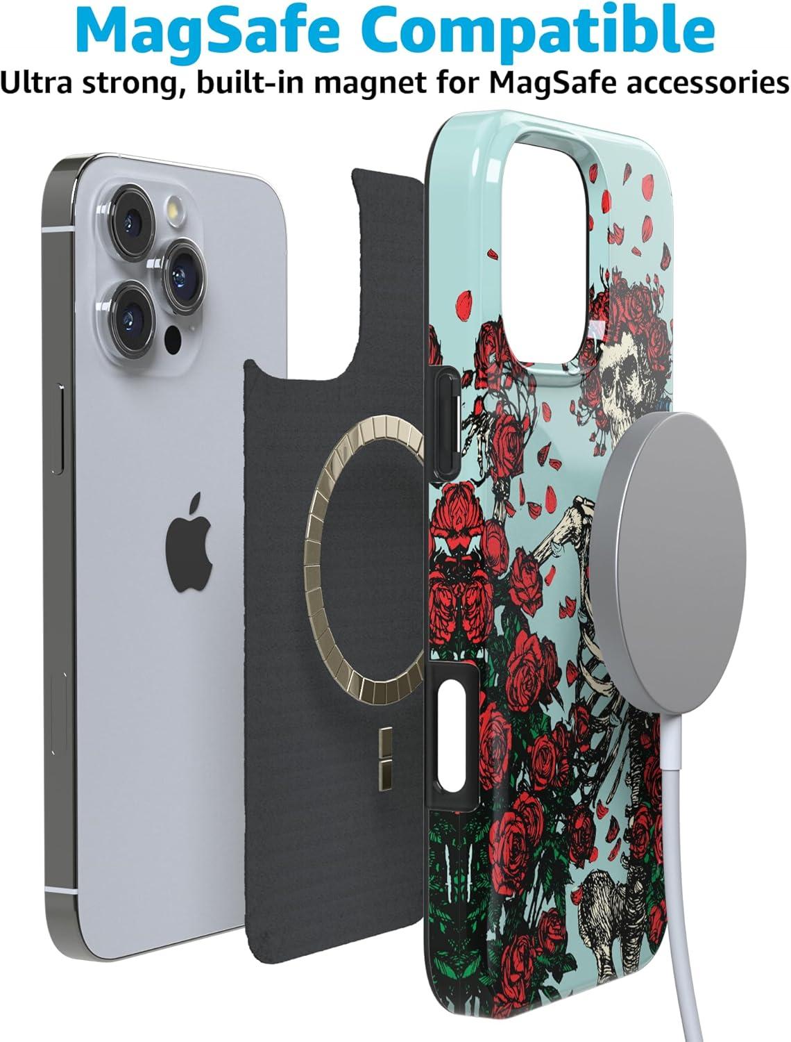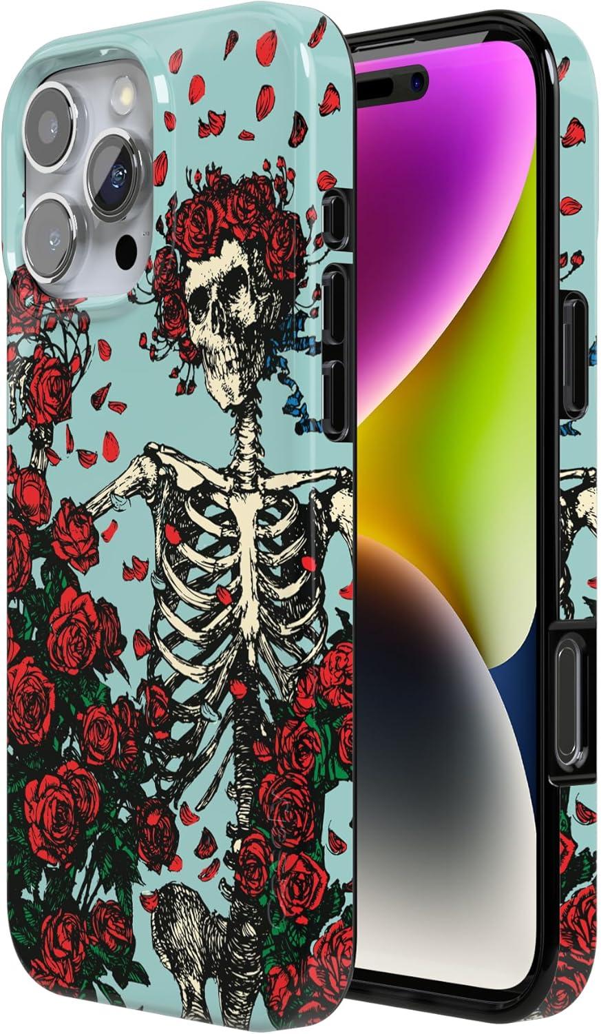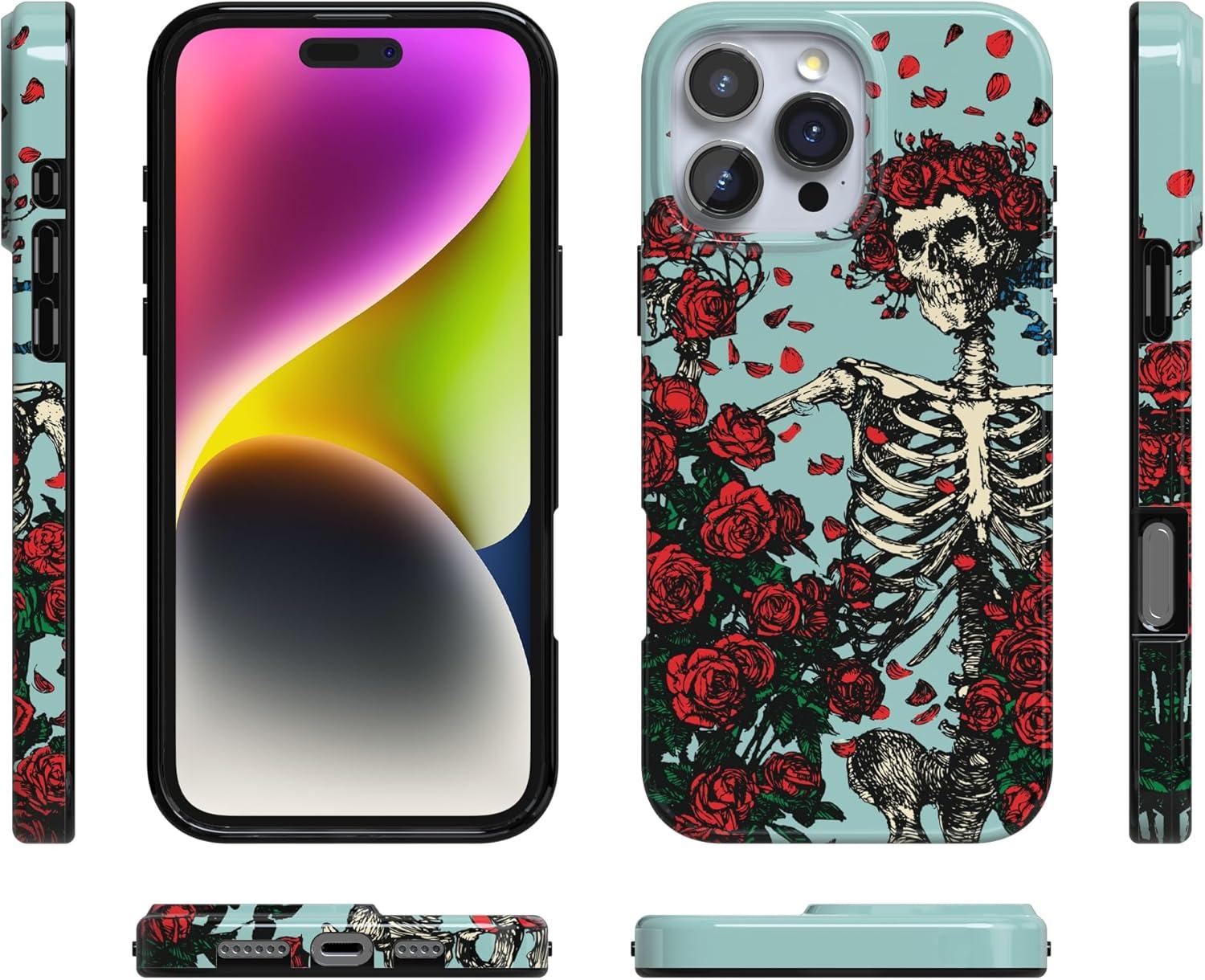 Casely iPhone 16 Pro Case | Moody Monochrome | Twilight Flora | Compatible with MagSafe | Classic Ultra Thin Design(Forever Grateful | Grateful Dead Skeleton Floral)