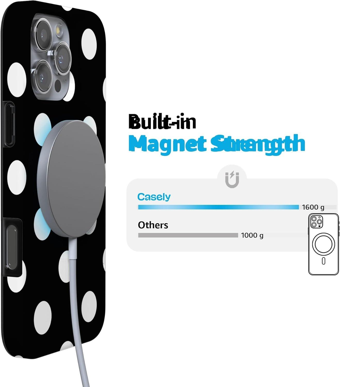 Casely iPhone 16 Pro Case | Moody Monochrome | Twilight Flora | Compatible with MagSafe | Classic Ultra Thin Design(High Contrast | Black Polka Dot)