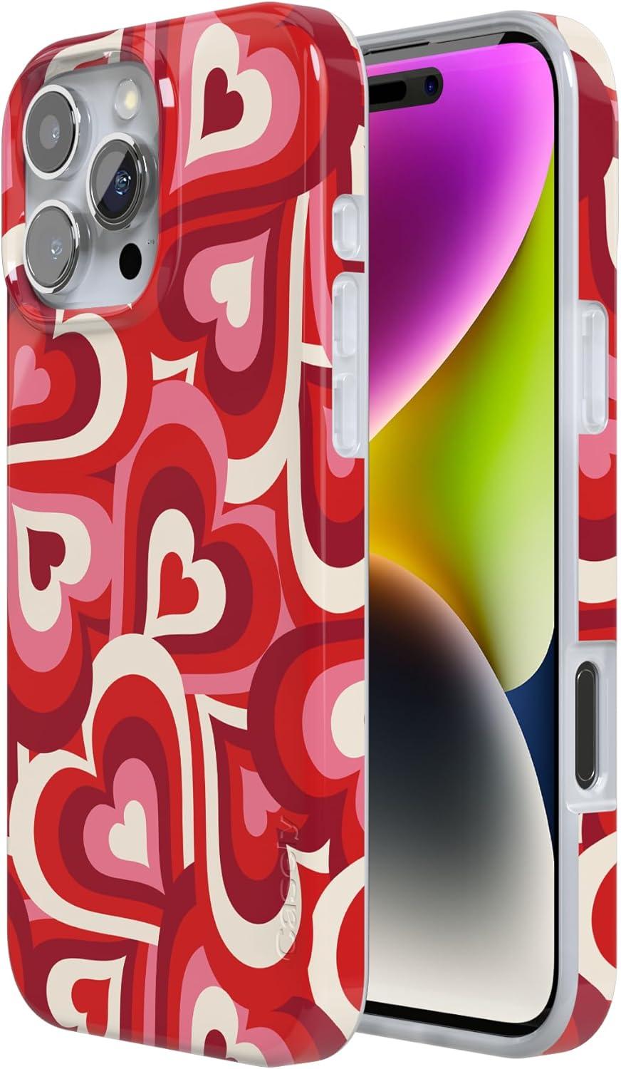 Casely iPhone 16 Pro Case | Moody Monochrome | Twilight Flora | Compatible with MagSafe | Classic Ultra Thin Design(Love Song Remix | Ombre Hearts)