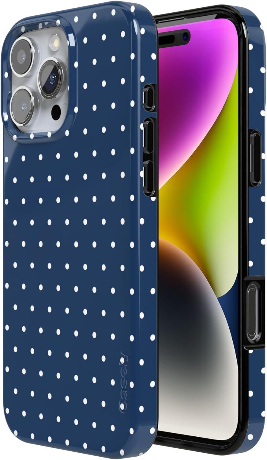Casely iPhone 16 Pro Case | Moody Monochrome | Twilight Flora | Compatible with MagSafe | Classic Ultra Thin Design(On the Dot | Navy Polka Dot)