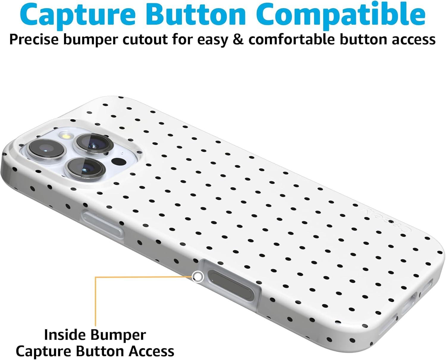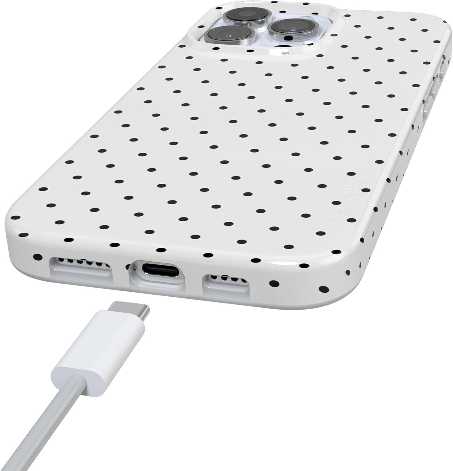 Casely iPhone 16 Pro Case | Moody Monochrome | Twilight Flora | Compatible with MagSafe | Classic Ultra Thin Design(On the Dot | White Polka Dot)