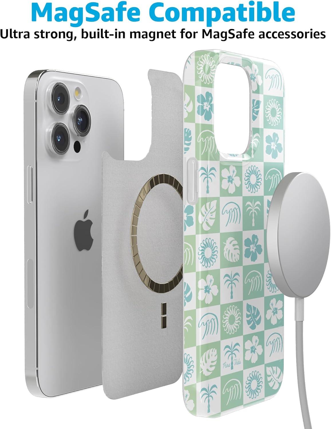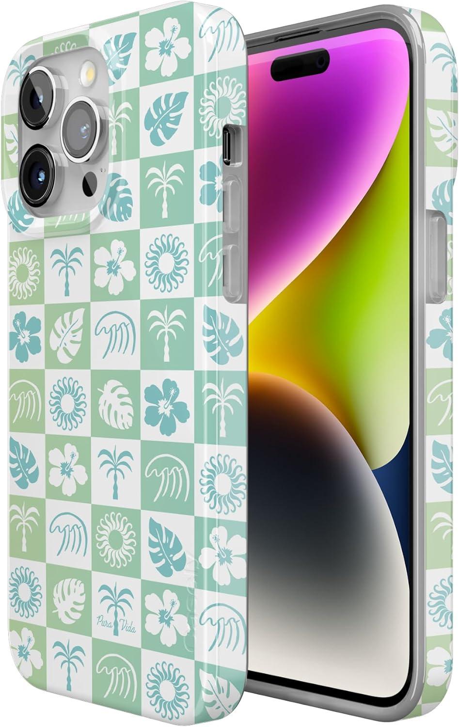 Casely iPhone 16 Pro Case | Moody Monochrome | Twilight Flora | Compatible with MagSafe | Classic Ultra Thin Design(Pura Vida | Coastal Checkers)