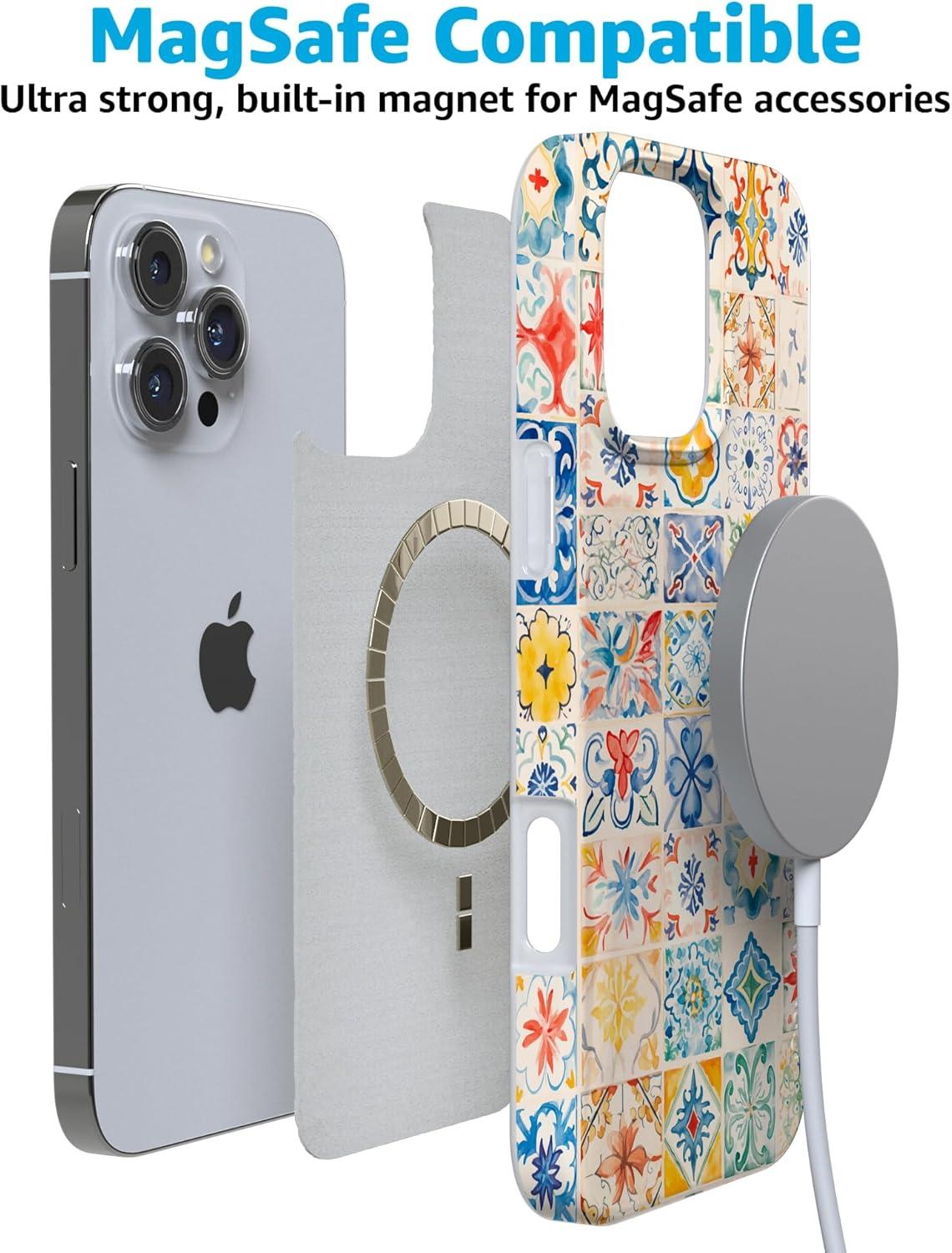 Casely iPhone 16 Pro Case | Moody Monochrome | Twilight Flora | Compatible with MagSafe | Classic Ultra Thin Design(Tuscan Tiles | Dolce Vita)