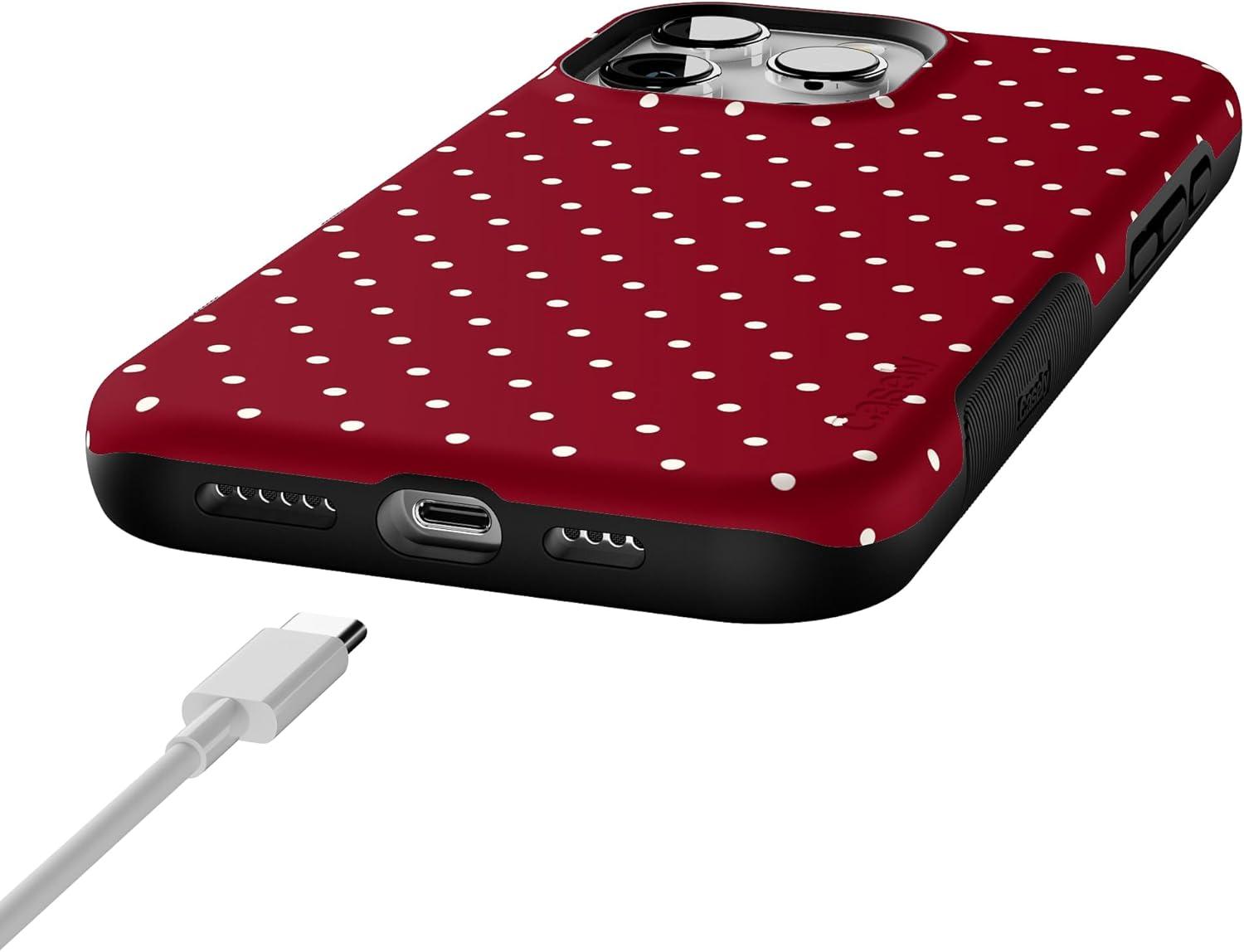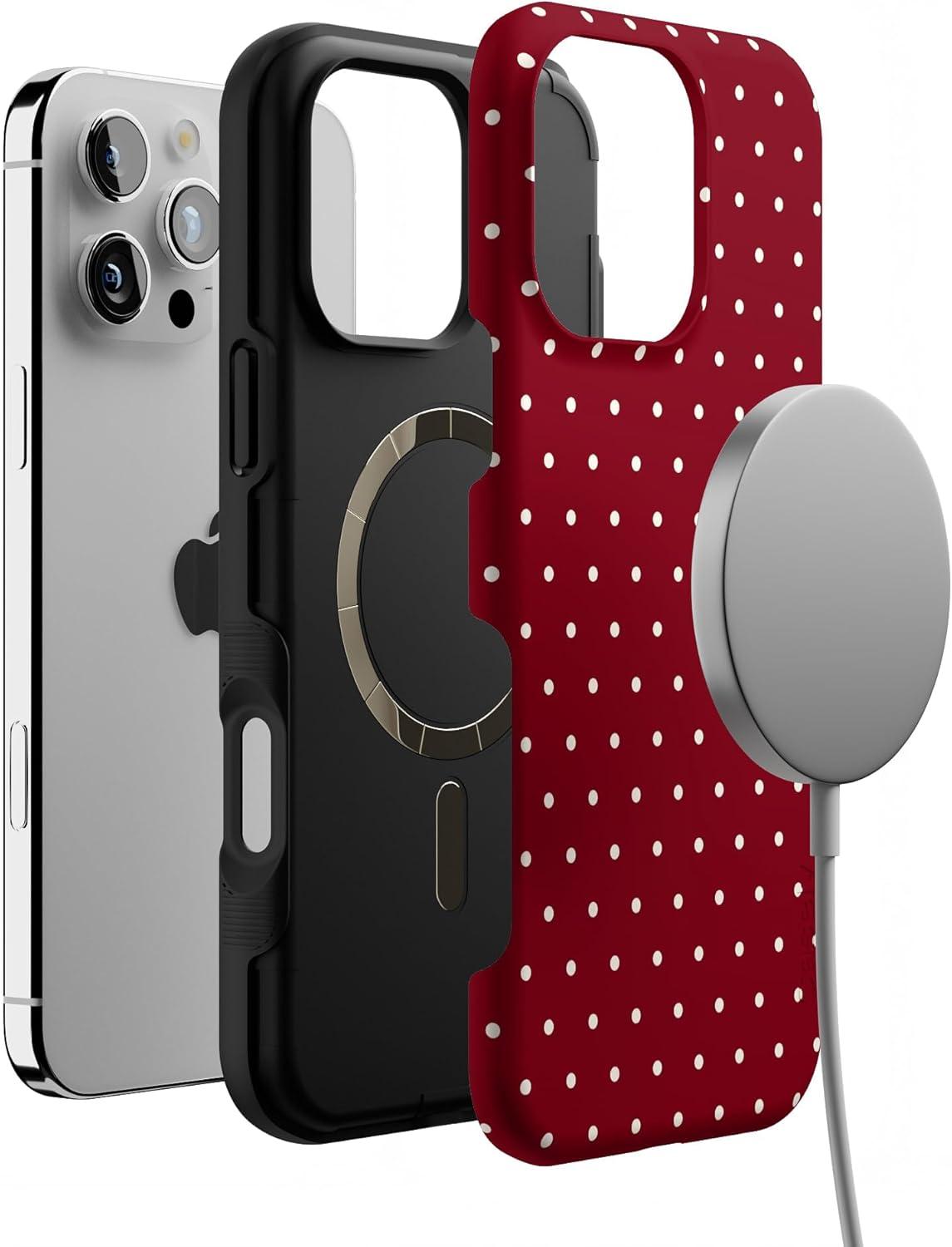 Casely iPhone 16 Pro Case | On The Dot | Maroon Polka Dot | Bold Protective Design | MagSafe Compatible Design
