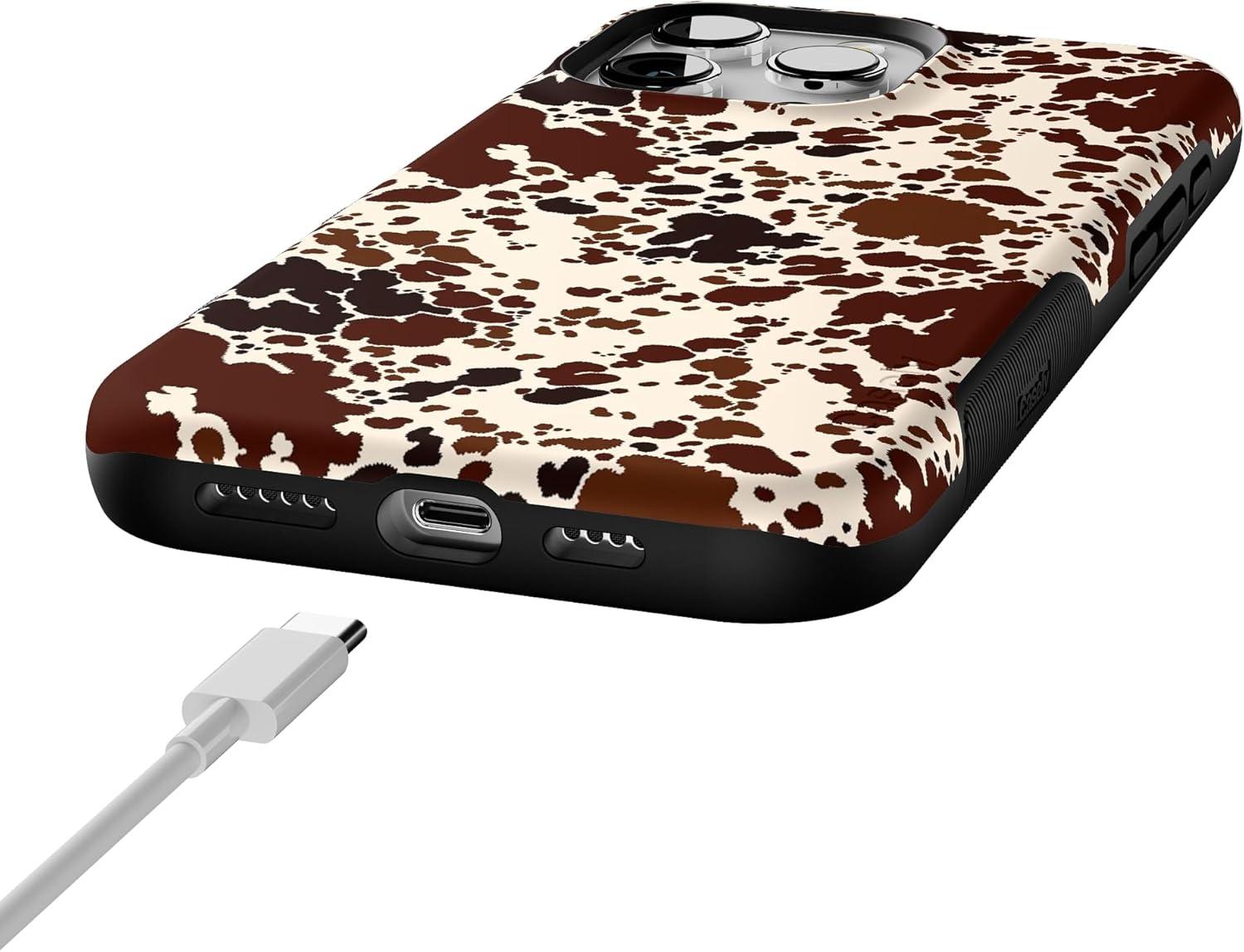 Casely iPhone 16 Pro Case | Ride The Wave | Pastel Rainbow Lined | Compatible with MagSafe | Bold Protective Design(Cowgirl Envy | Cow Print)