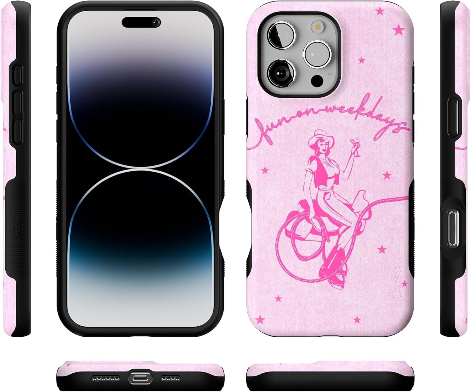 Casely iPhone 16 Pro Case | Ride The Wave | Pastel Rainbow Lined | Compatible with MagSafe | Bold Protective Design(Denim Cowgirl | Fun on Weekdays)