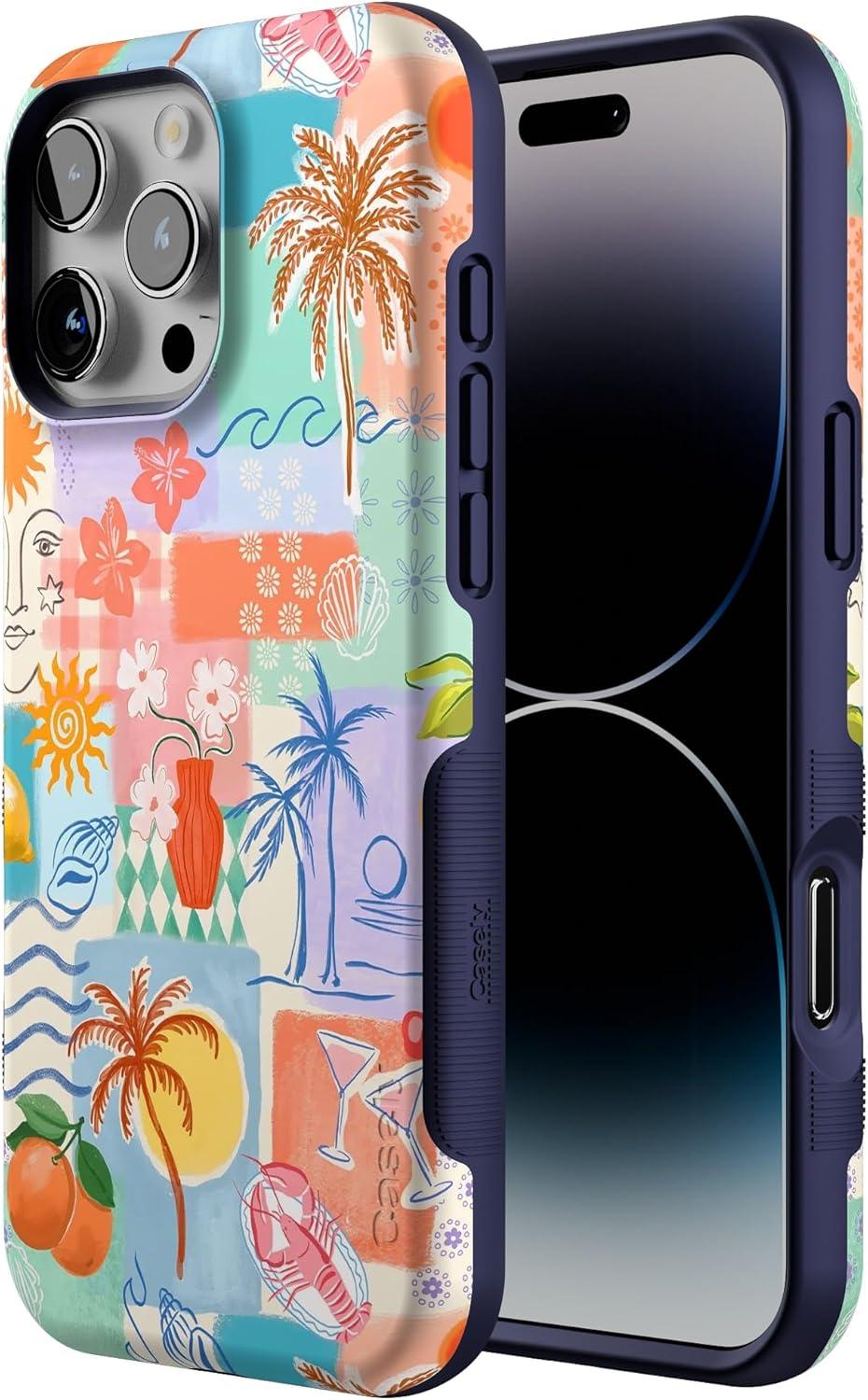 Casely iPhone 16 Pro Case | Ride The Wave | Pastel Rainbow Lined | Compatible with MagSafe | Bold Protective Design(Tropical Heat | Beachy Collage)