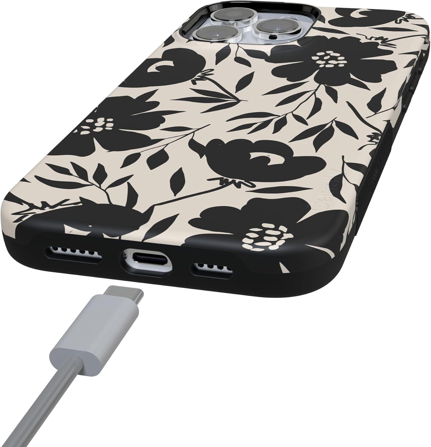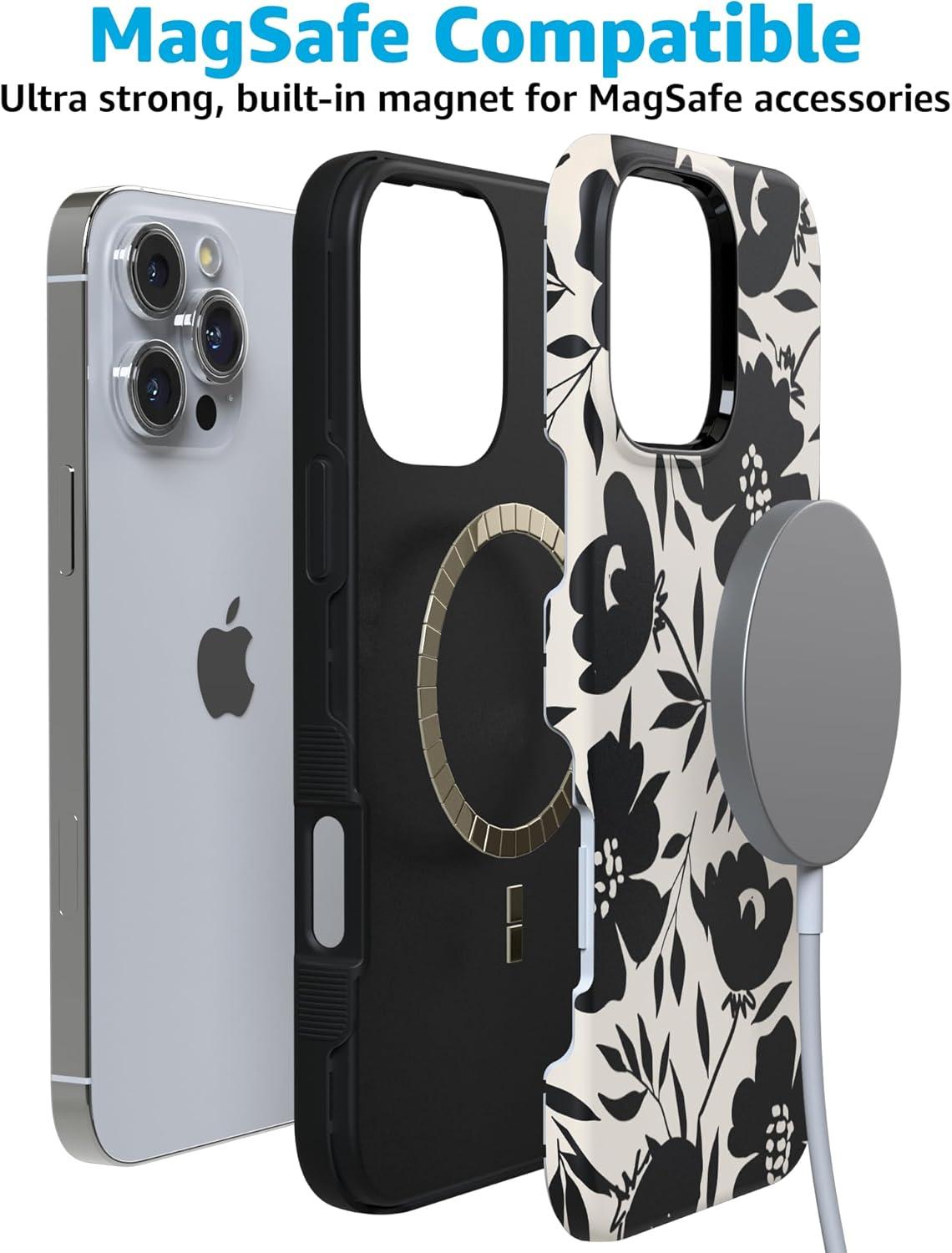 Casely iPhone 16 Pro Max Case | Bordeaux Rose | Moody Monochrome | Bold Protective Design | Compatible with MagSafe(Dark Fantasy | Contrast Floral)