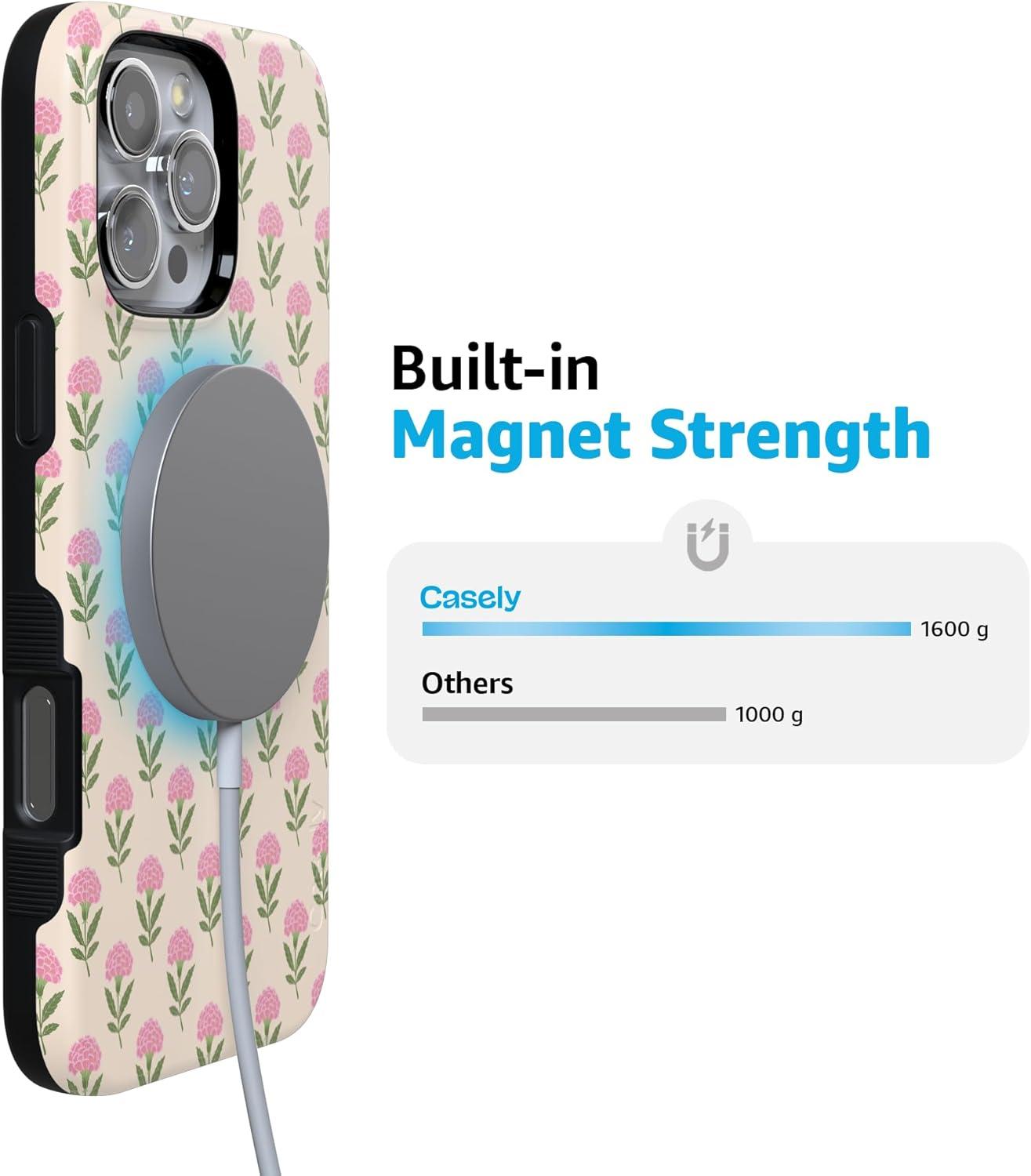 Casely iPhone 16 Pro Max Case | Bordeaux Rose | Moody Monochrome | Bold Protective Design | Compatible with MagSafe(Jenna’s Flowers | Fun on Weekdays)