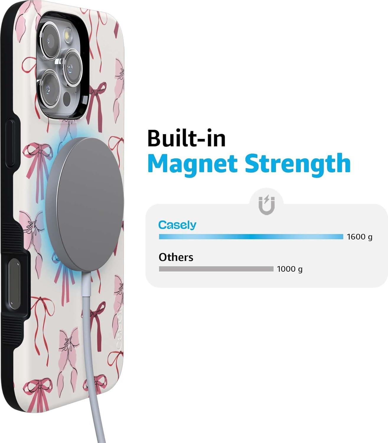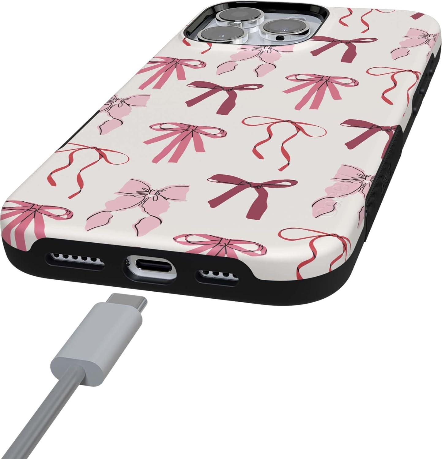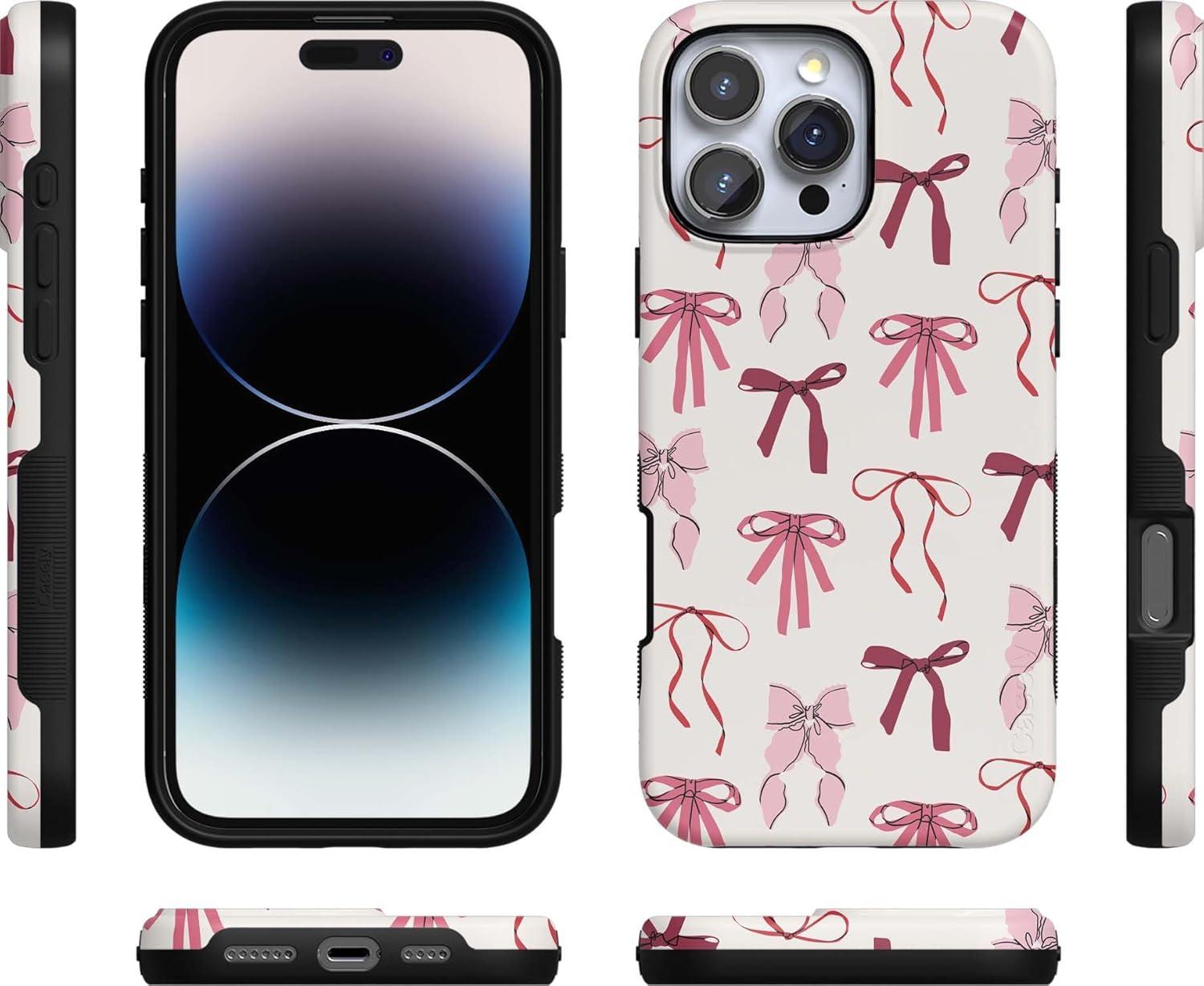Casely iPhone 16 Pro Max Case | Bordeaux Rose | Moody Monochrome | Bold Protective Design | Compatible with MagSafe(Lover Girlie | Pink Bows)