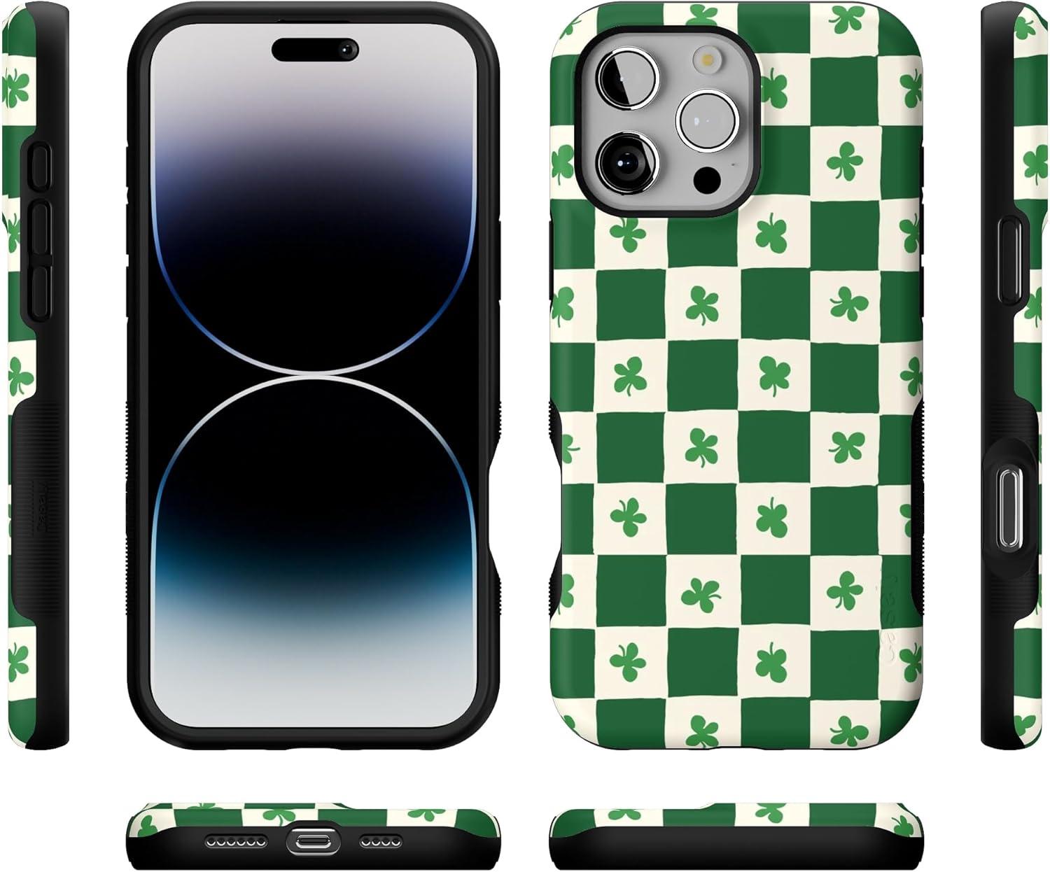 Casely iPhone 16 Pro Max Case | Bordeaux Rose | Moody Monochrome | Bold Protective Design | Compatible with MagSafe(Lucky You | Shamrock)