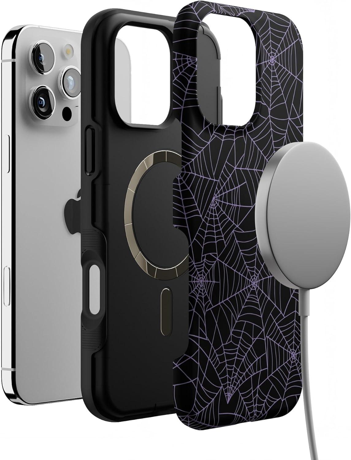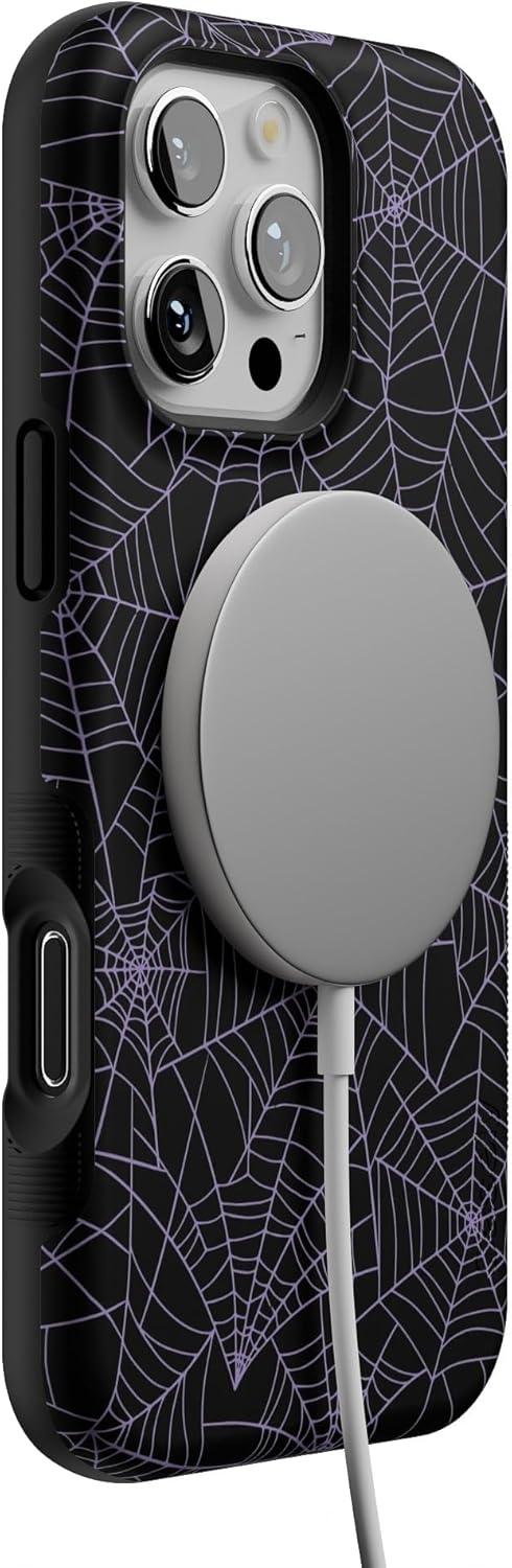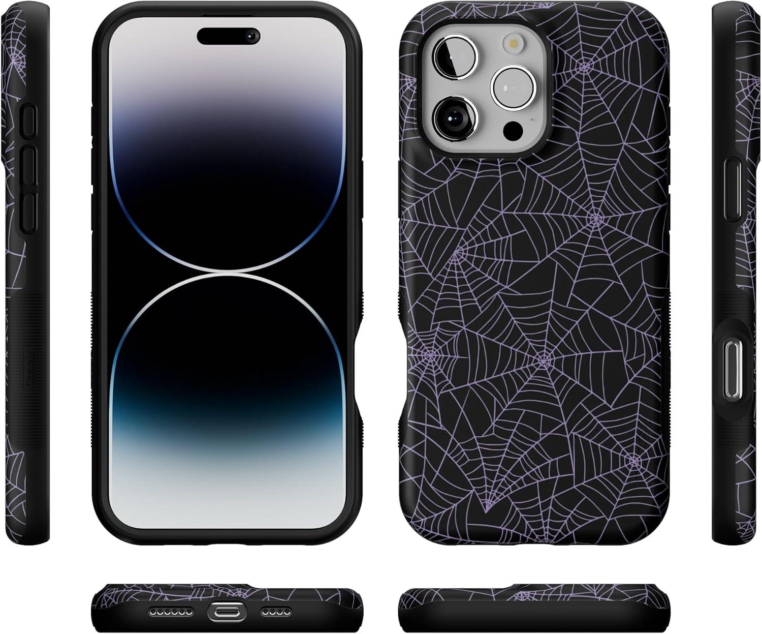Casely iPhone 16 Pro Max Case | Bordeaux Rose | Moody Monochrome | Bold Protective Design | Compatible with MagSafe(Midnight Web | Spider Web)