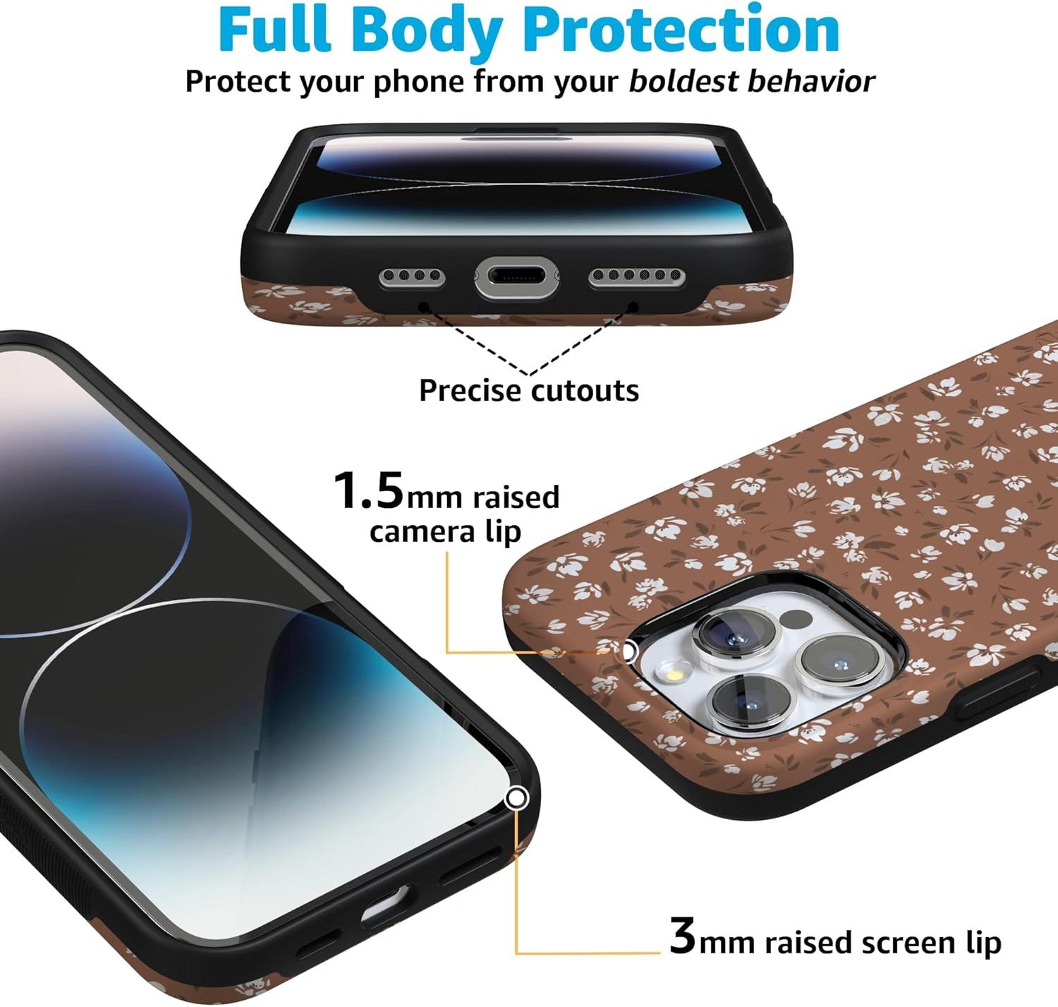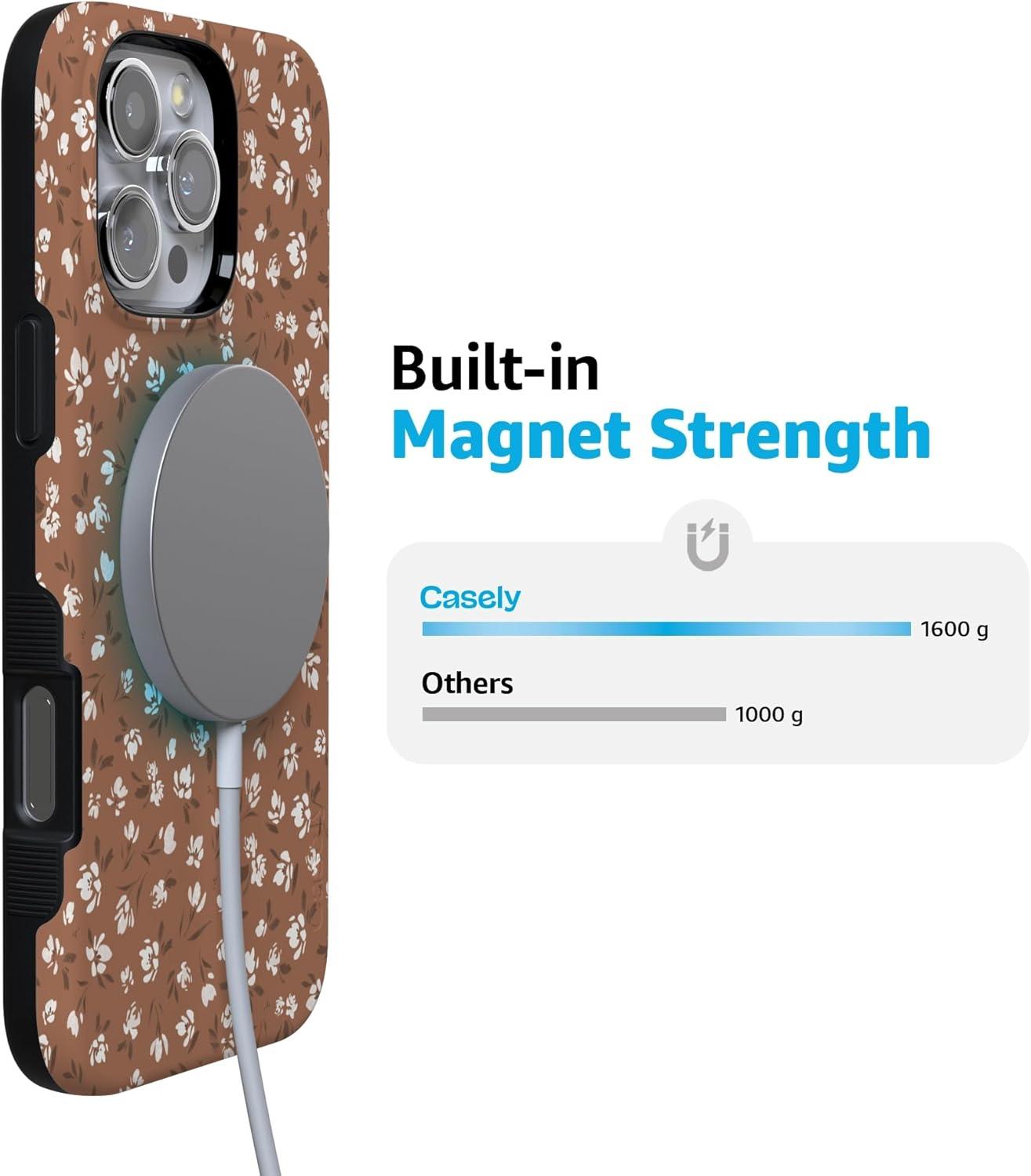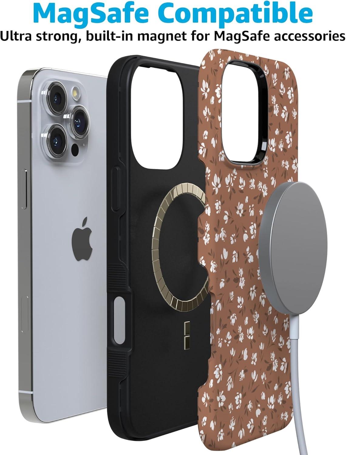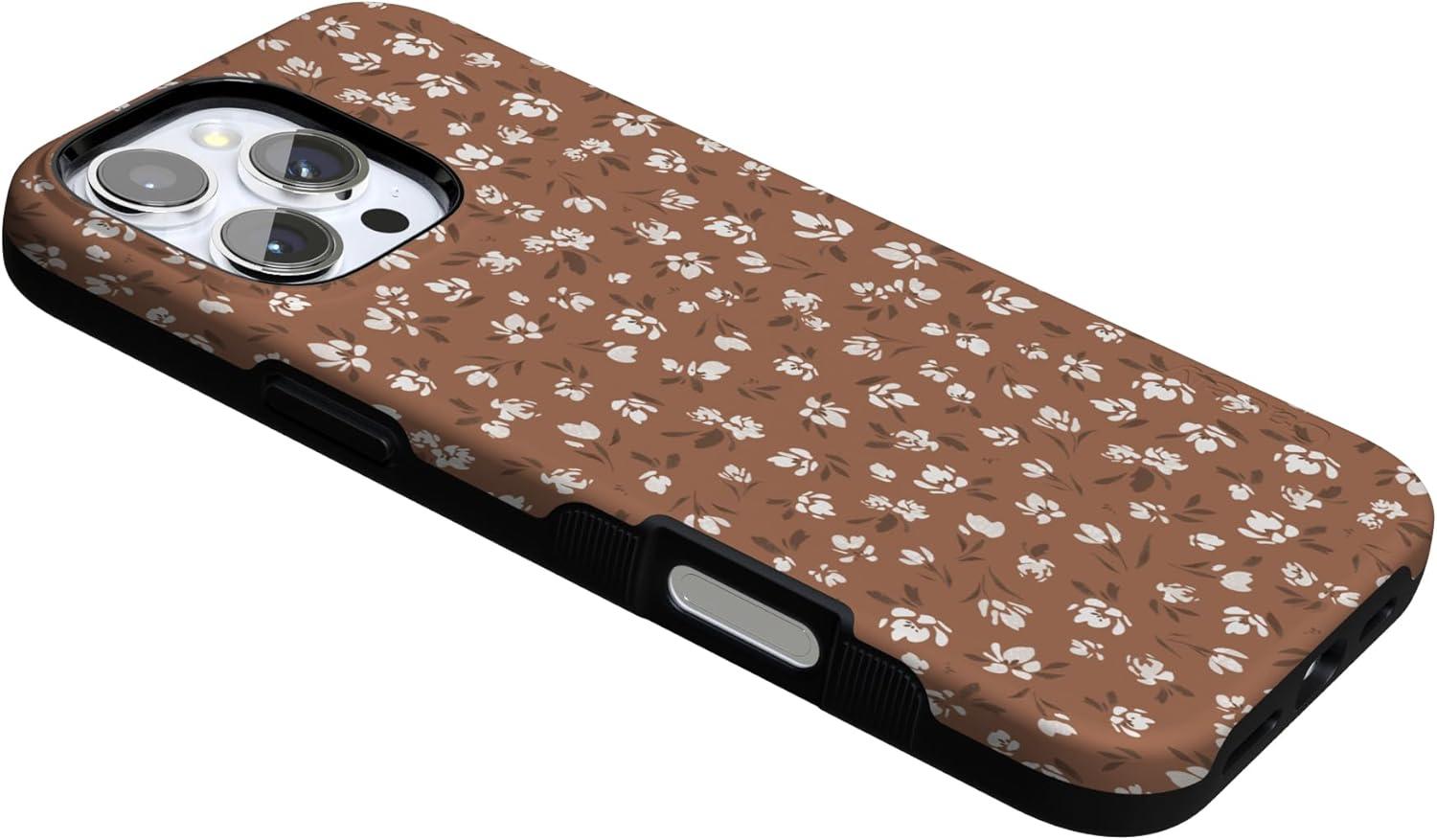 Casely iPhone 16 Pro Max Case | Bordeaux Rose | Moody Monochrome | Bold Protective Design | Compatible with MagSafe(Mocha Meadow | Tiny Flowers)