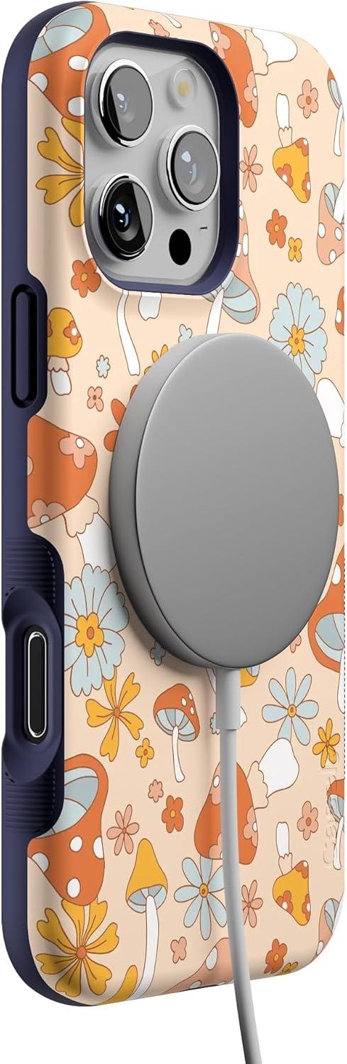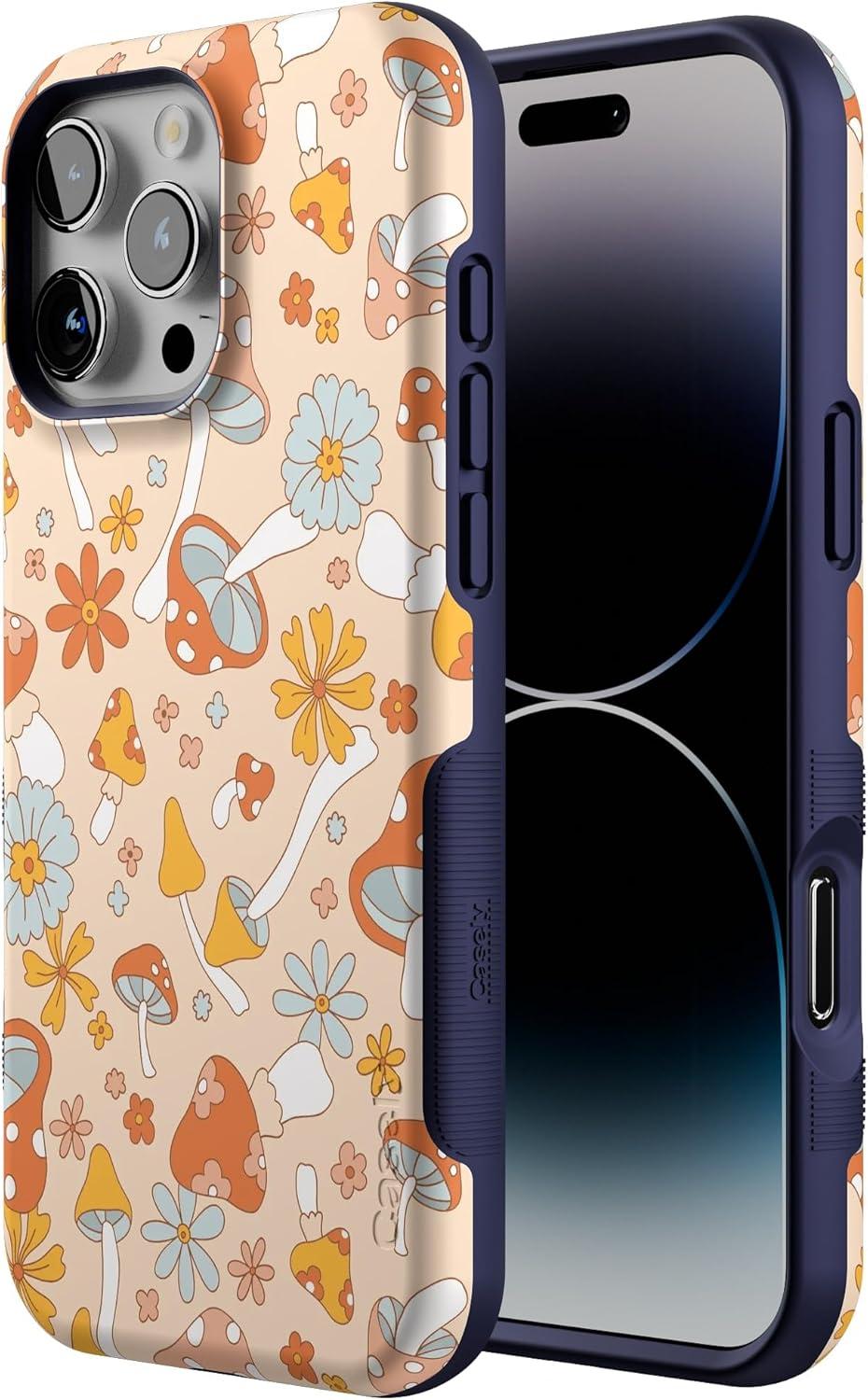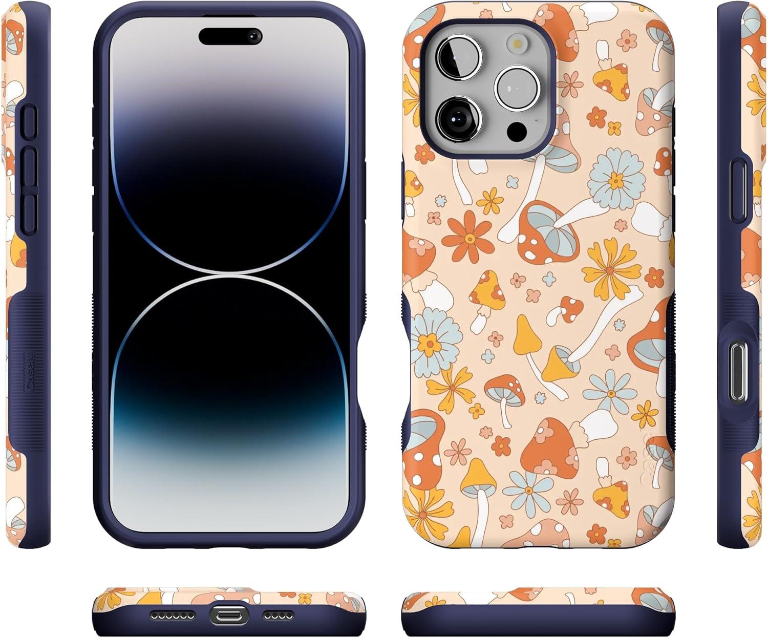 Casely iPhone 16 Pro Max Case | Bordeaux Rose | Moody Monochrome | Bold Protective Design | Compatible with MagSafe(Mushroom Magic | Retro Floral)