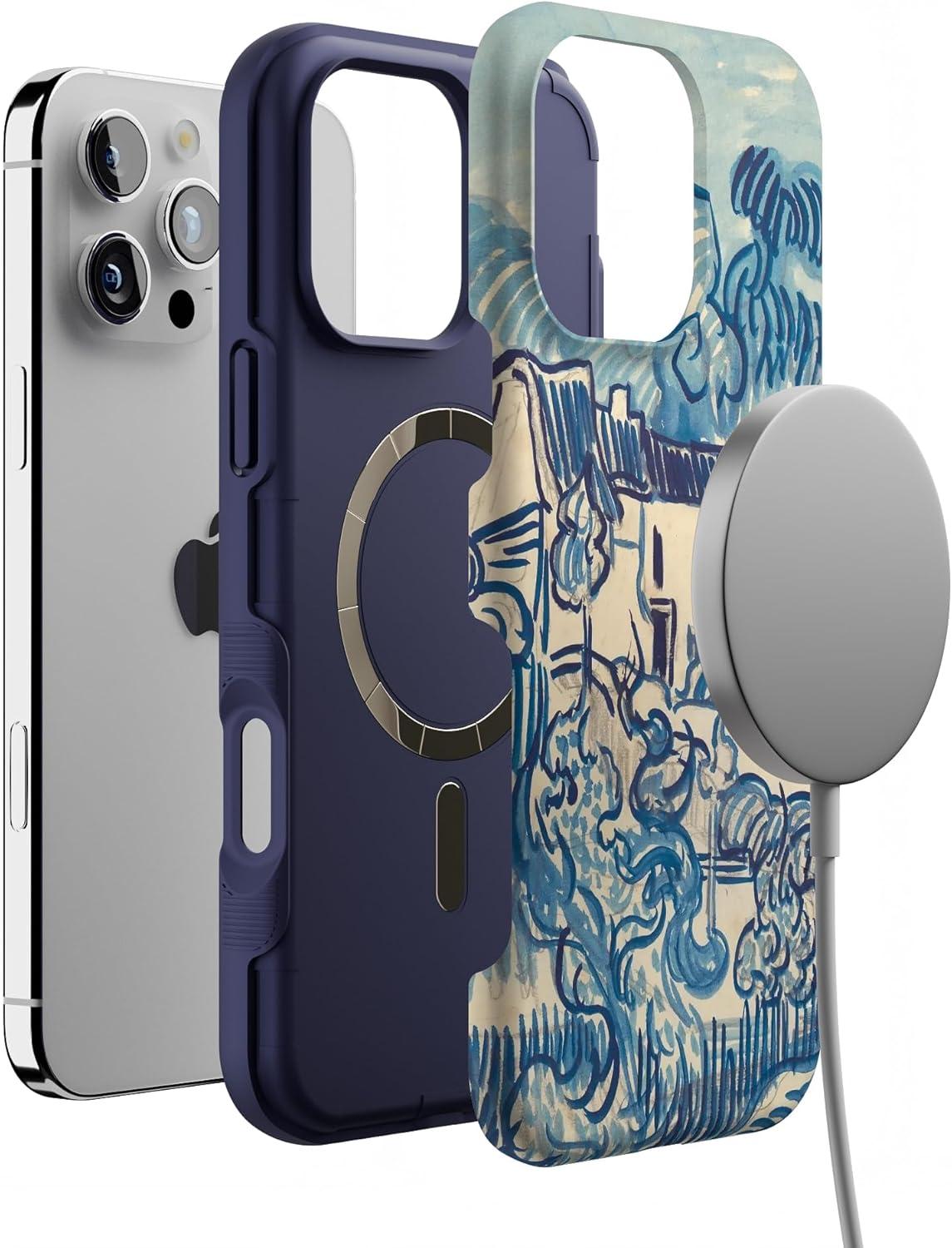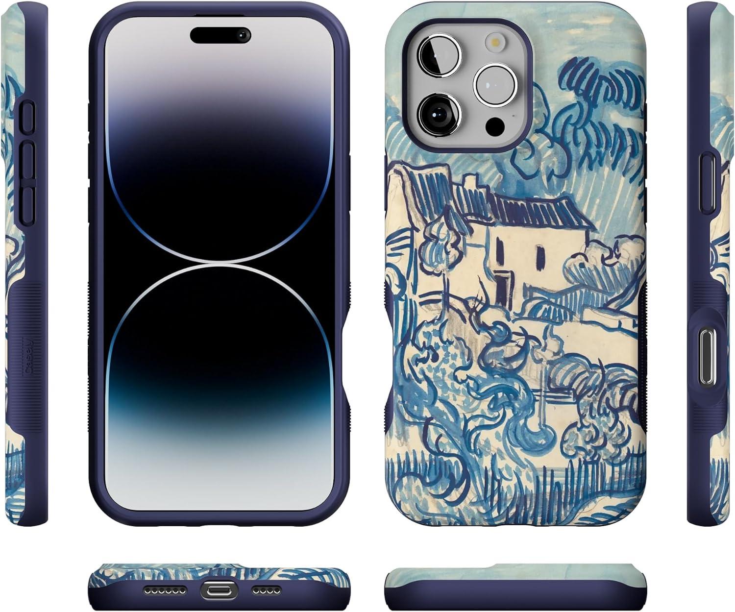 Casely iPhone 16 Pro Max Case | Bordeaux Rose | Moody Monochrome | Bold Protective Design | Compatible with MagSafe(Van Gogh | Landscape With Houses)