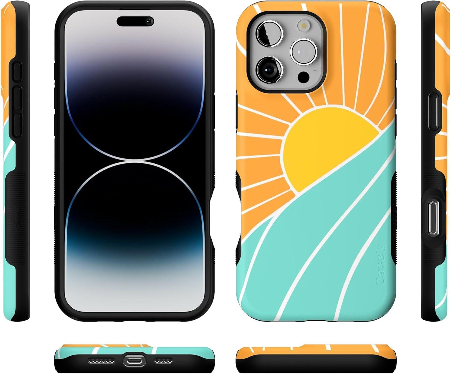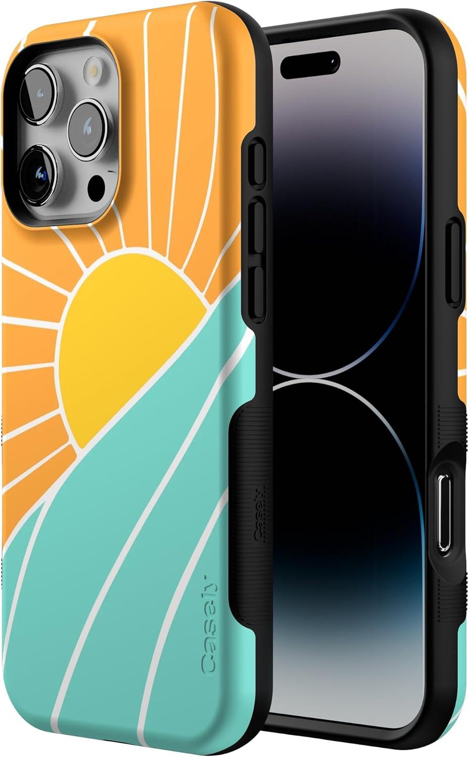 Casely iPhone 16 Pro Max Case | Bordeaux Rose | Moody Monochrome | Bold Protective Design | Compatible with MagSafe(Waves & Rays | Sunshine)