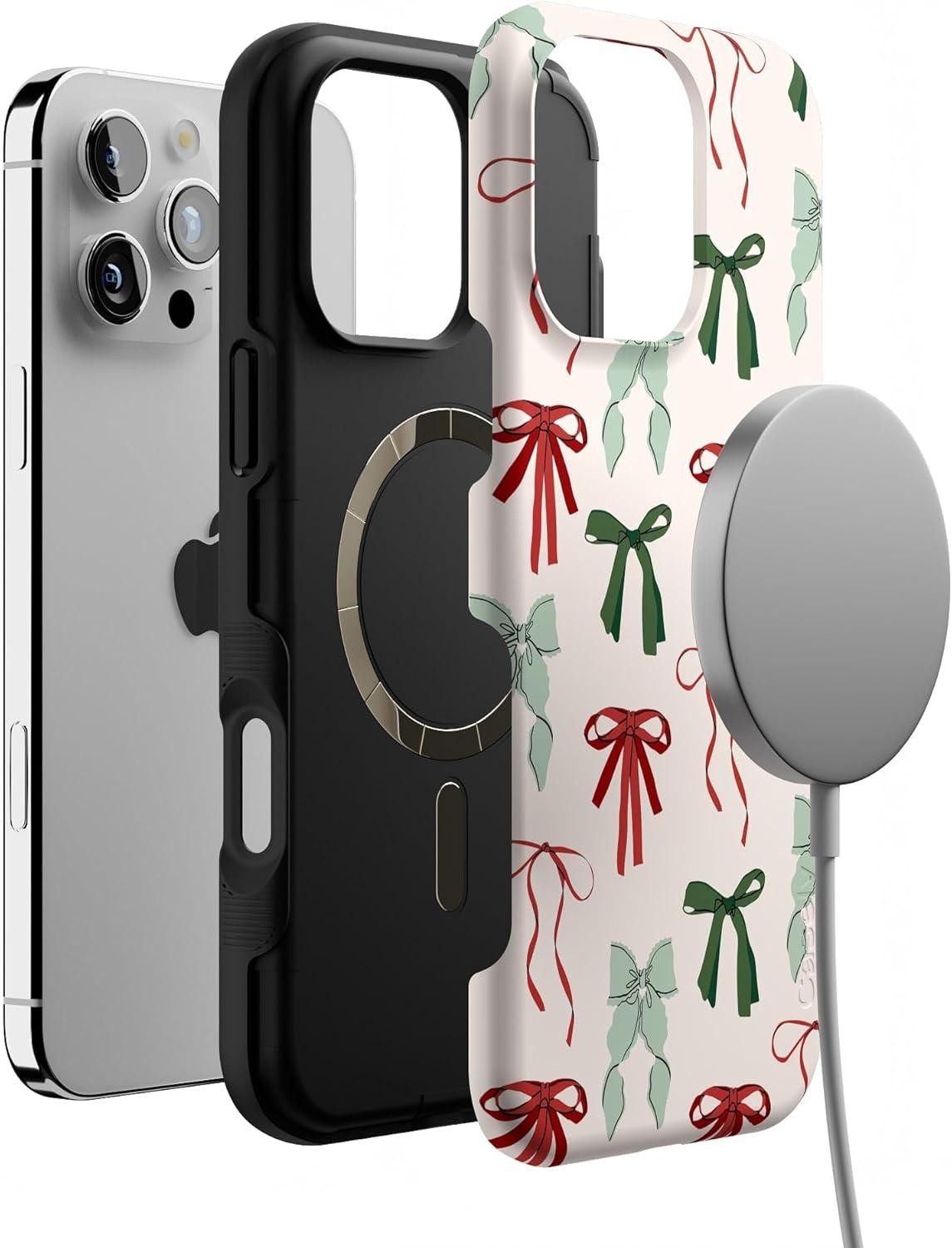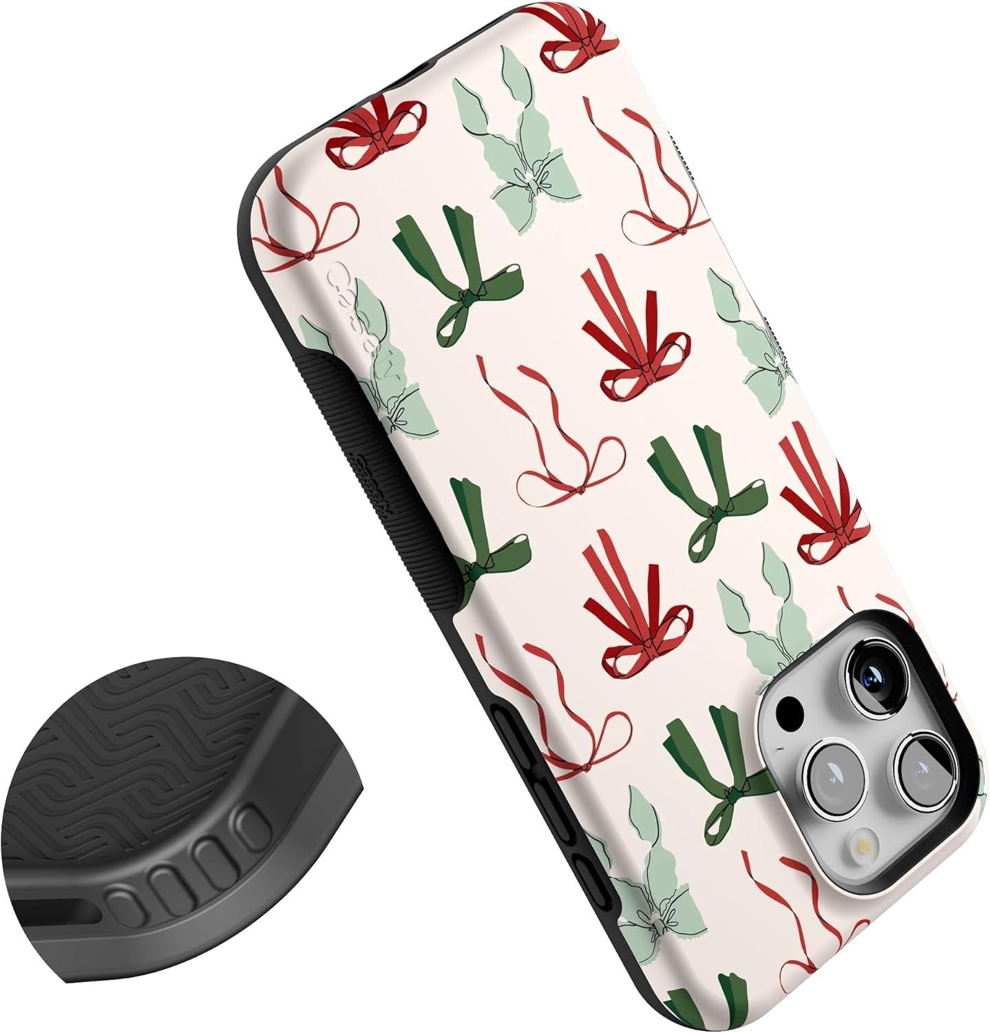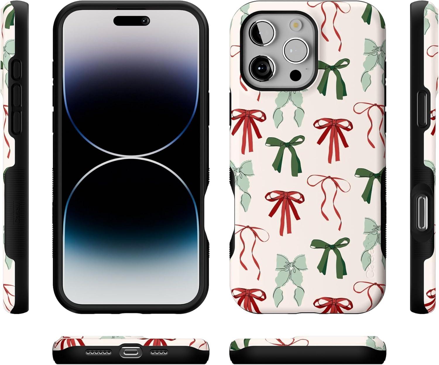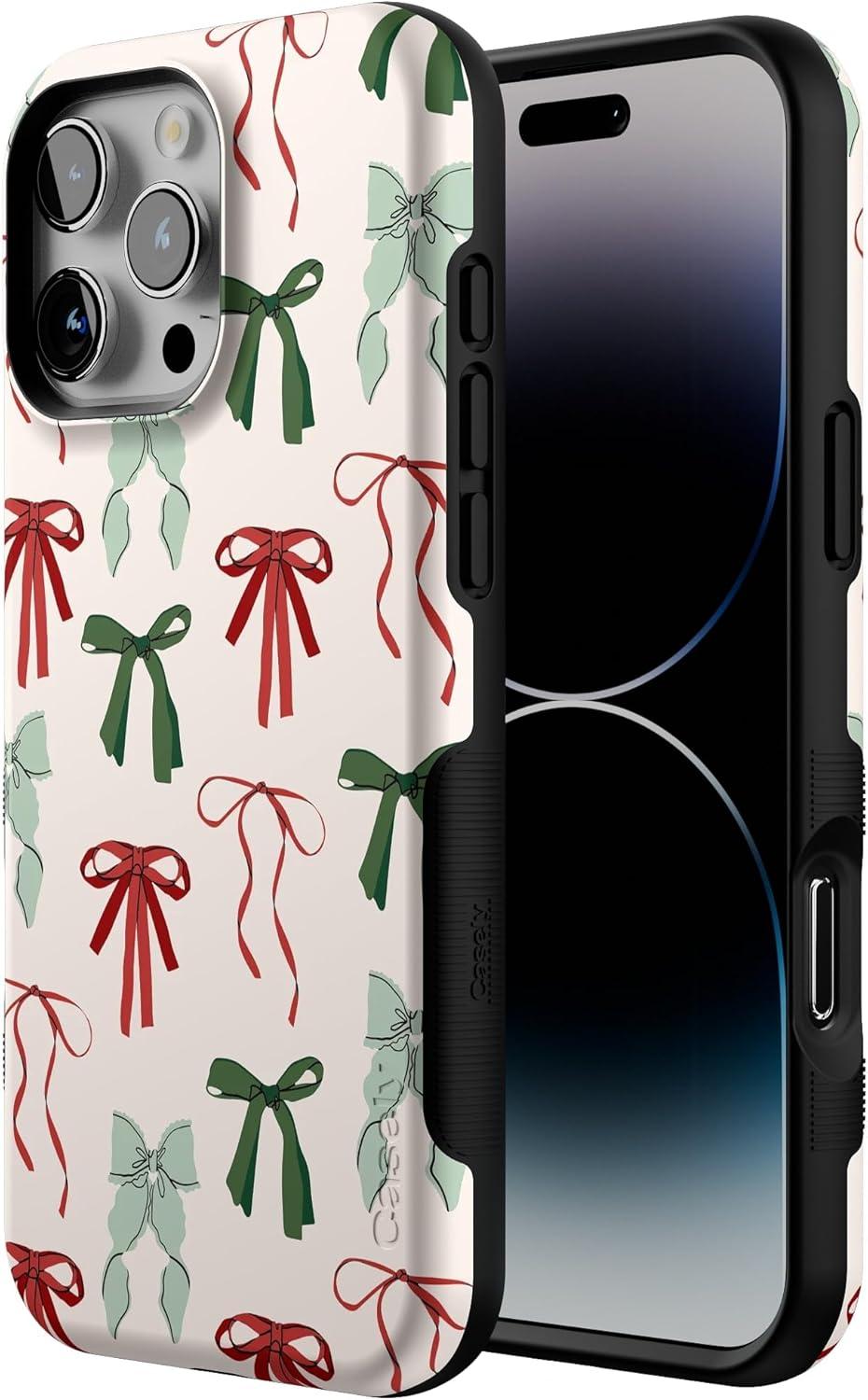 Casely iPhone 16 Pro Max Case | Festive Girlie | Holiday Bows | Bold Protective Design | MagSafe Compatible Design