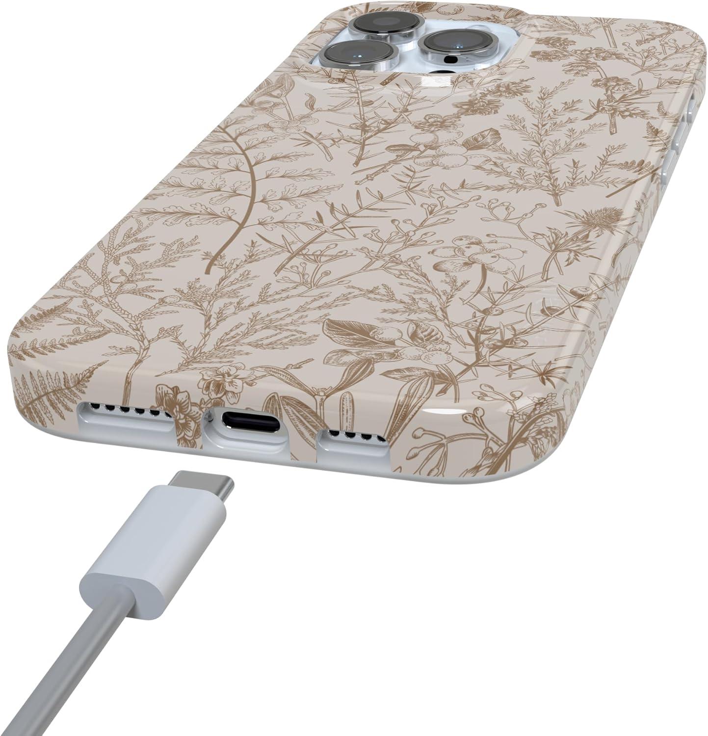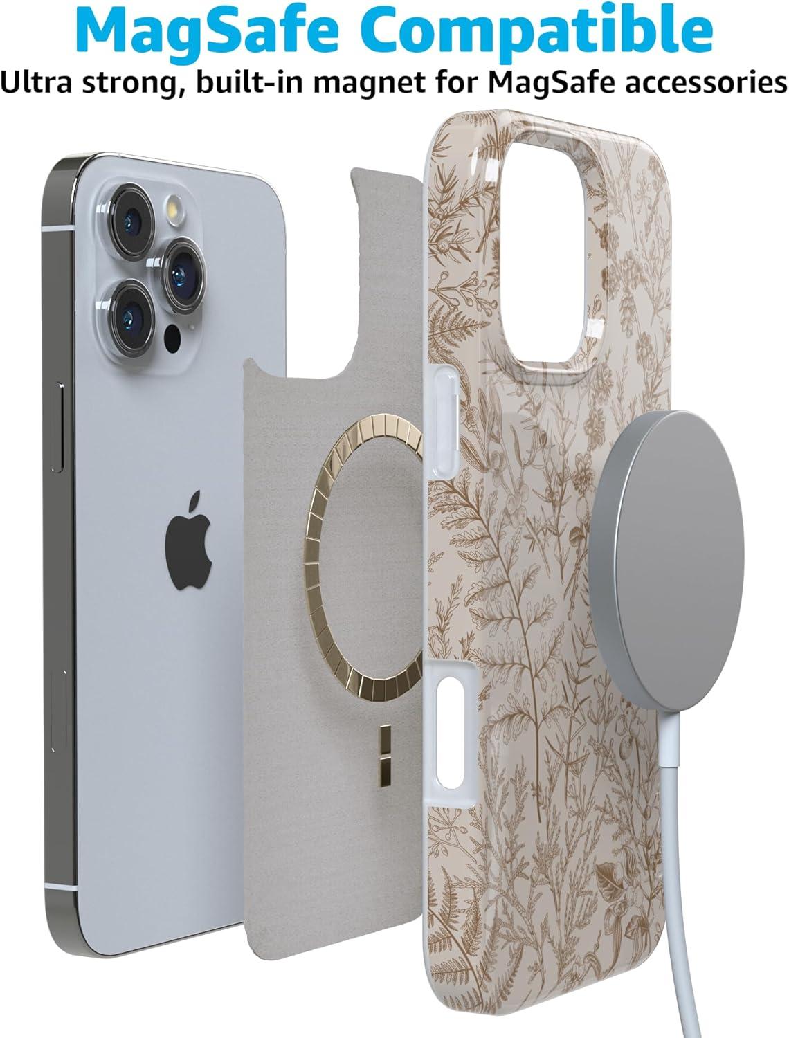 Casely iPhone 16 Pro Max Case | Garden Party | Mushroom Floral | Compatible with MagSafe | Classic Ultra Slim Design(Beige Garden | Neutral Floral)